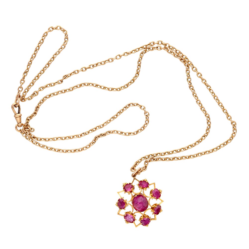 Featuring cabochon rubies.