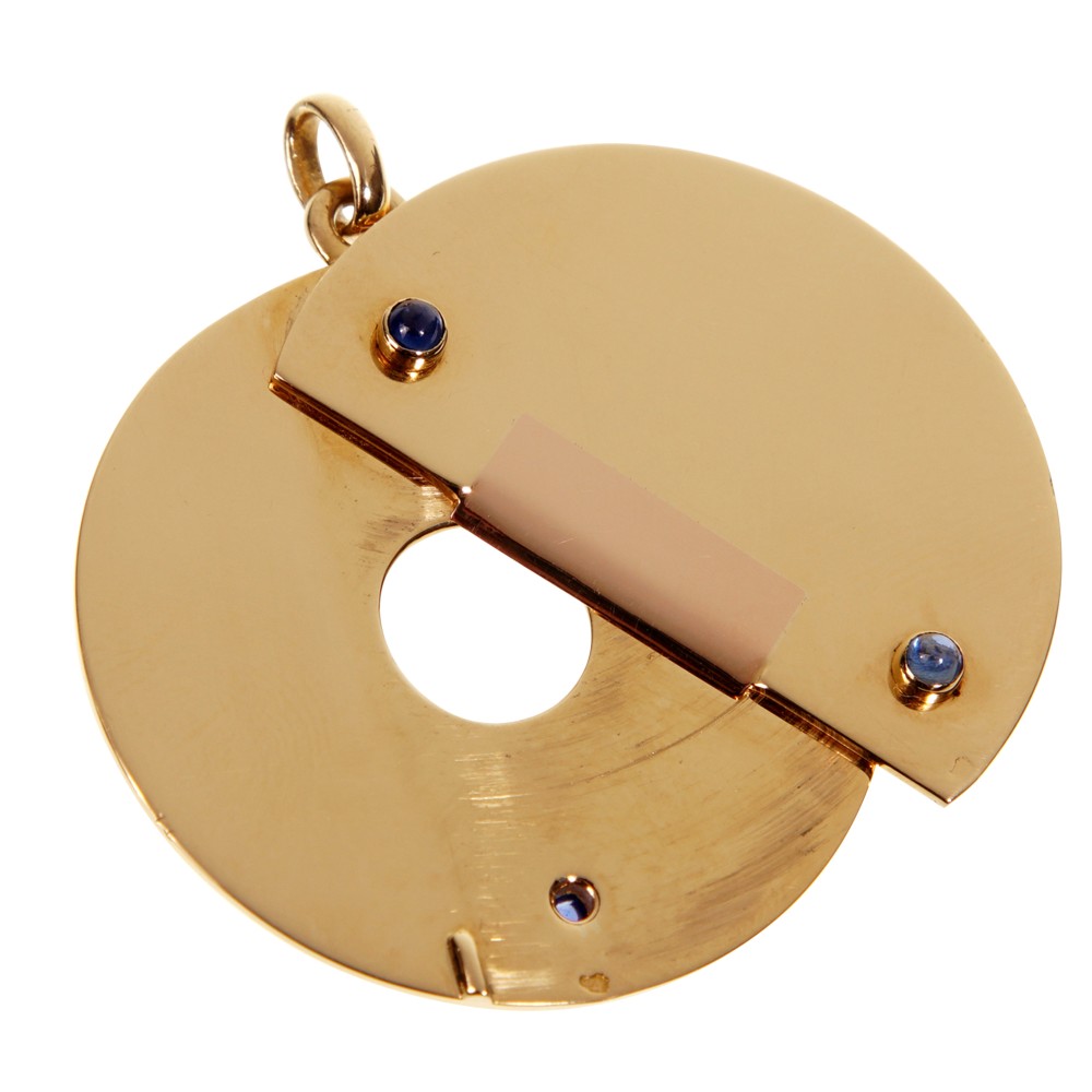 The pendant designed as a cigar cutter set with 4 cabochon sapphires.