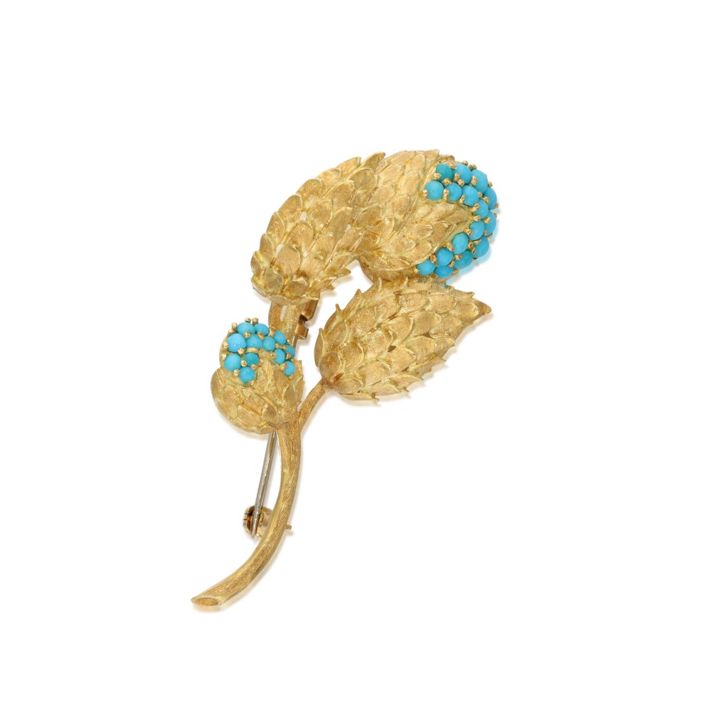 Composed of turquoise cabochons arranged in a flower.
