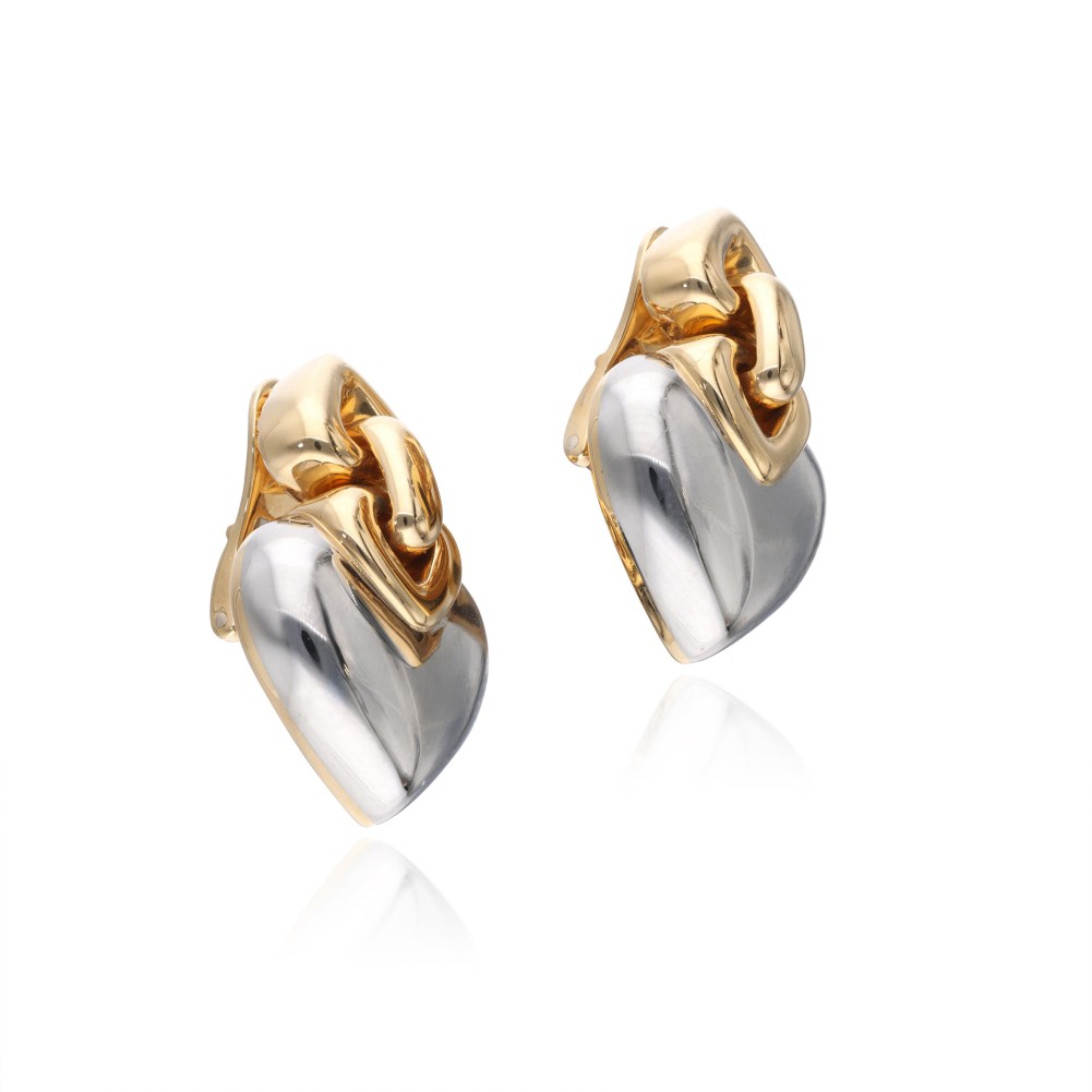 Of the Doppio Cuore collection, composed of white and yellow gold with a high-polish finish.