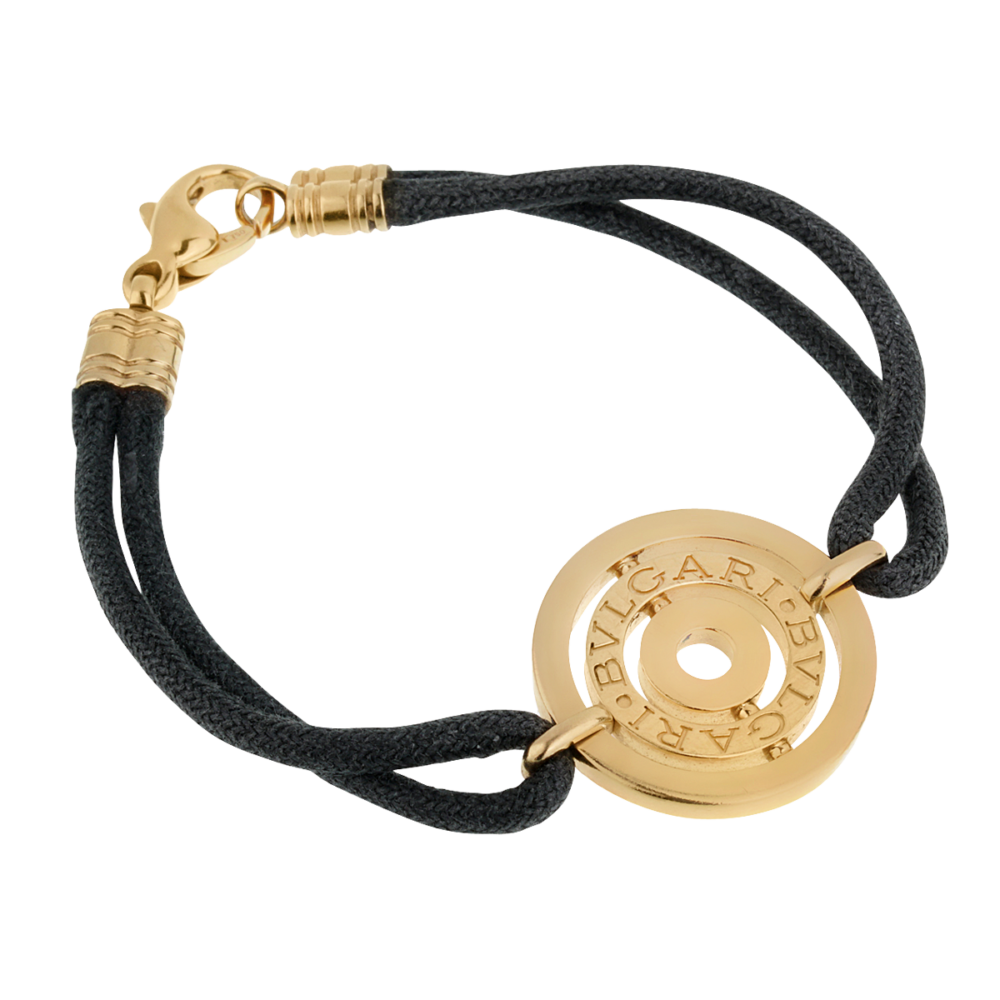 Showcasing the iconic Bulgari Bulgari motif on a cotton string.