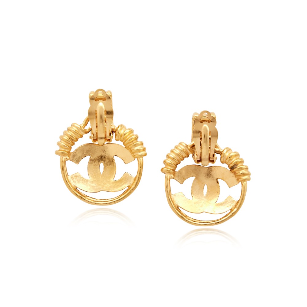 Chanel Gold CC Cutout Logo Drop Earrings, 1994