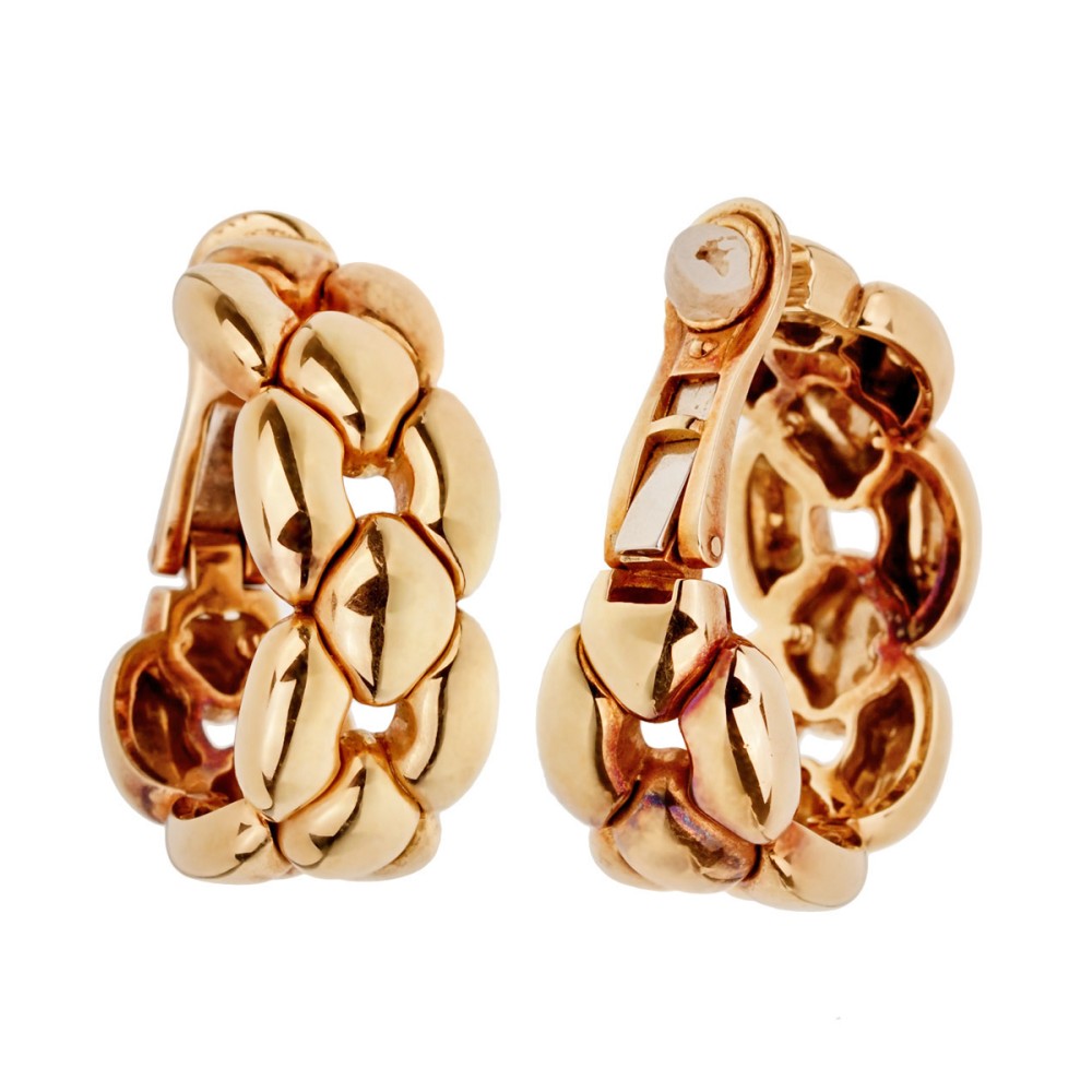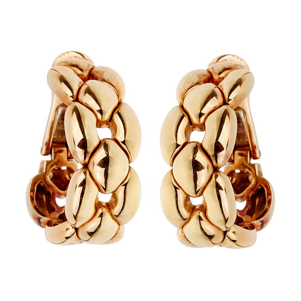 The earclips designed as a series of connected gold links which resemble a chain link.