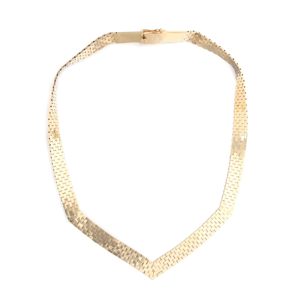 Composed of interlocking, flexible chain links with a personalized inscription “AFH” on the clasp.