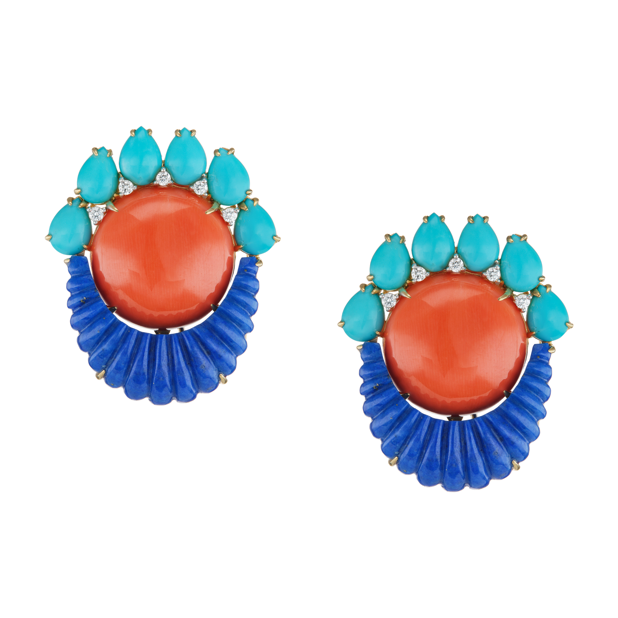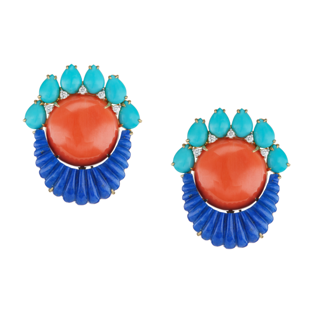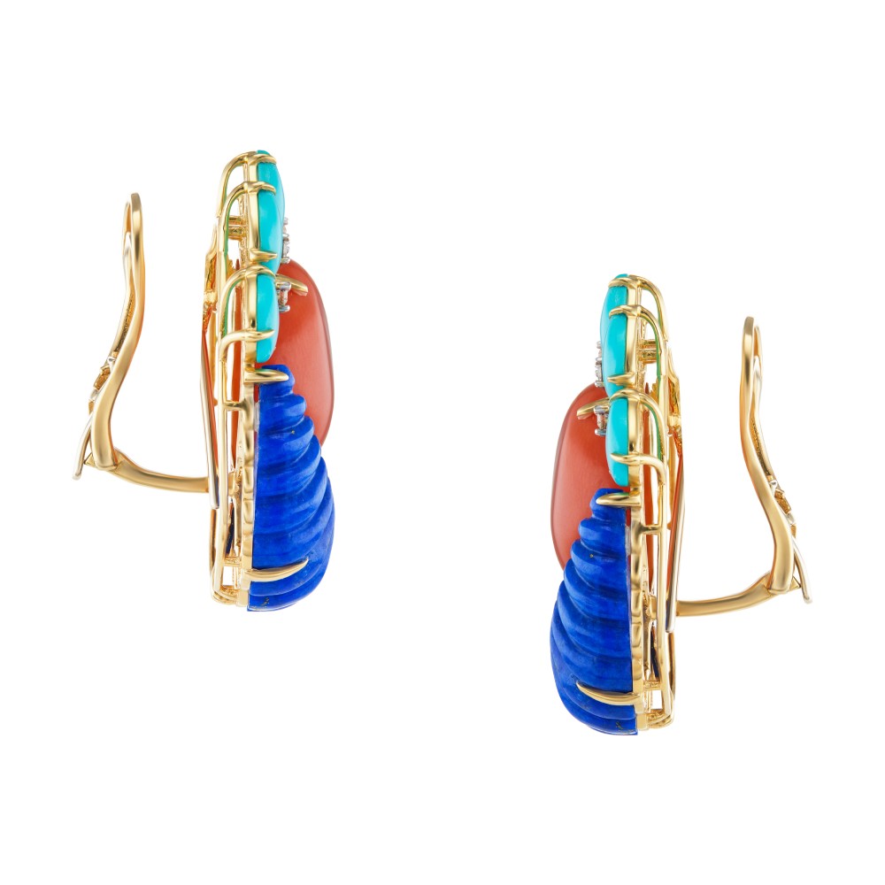 Coral, Diamond, Lapis Lazuli, Turquoise, Yellow Gold