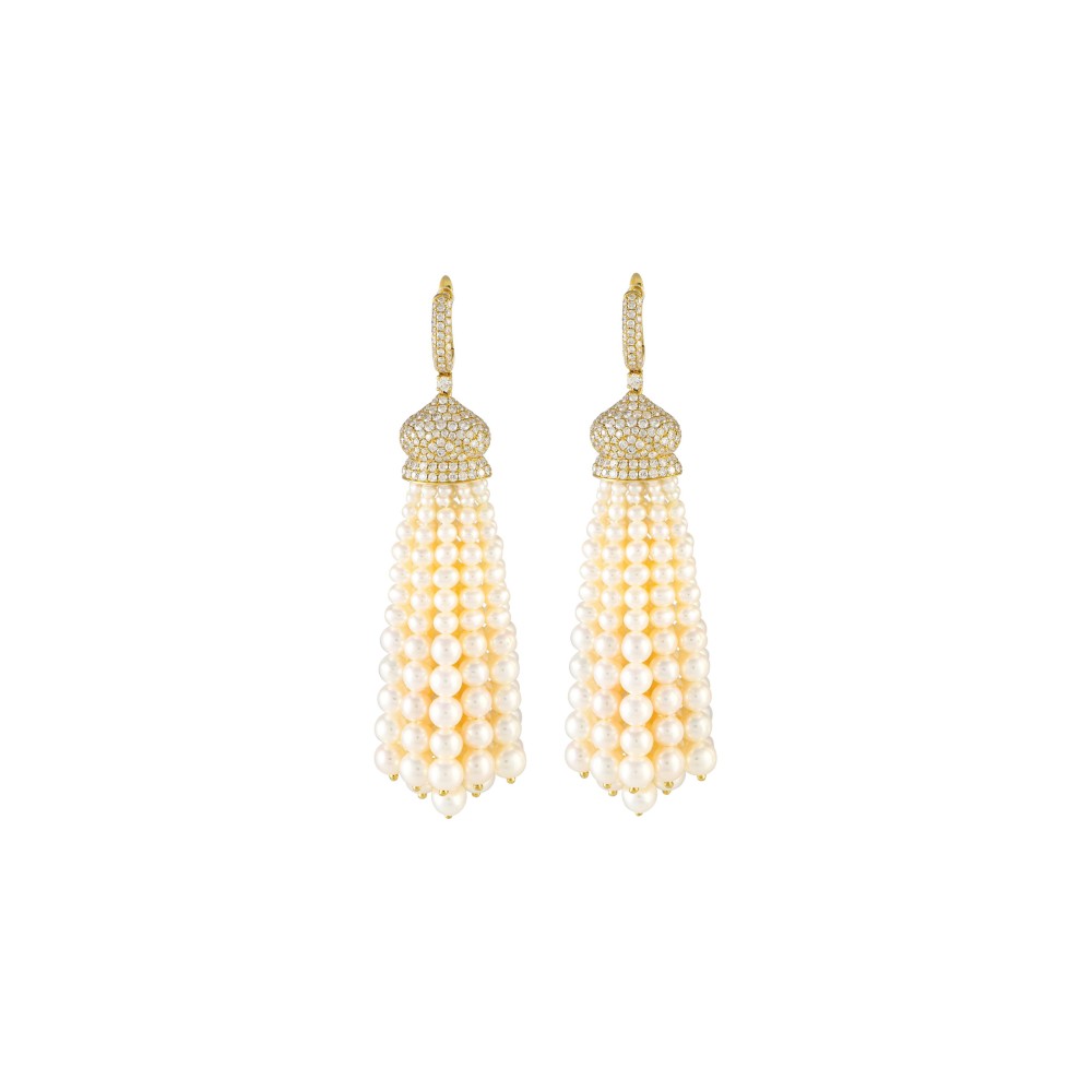 Featuring a cultured pearl tassel pendant with pav?-set diamonds on the cap and bale.