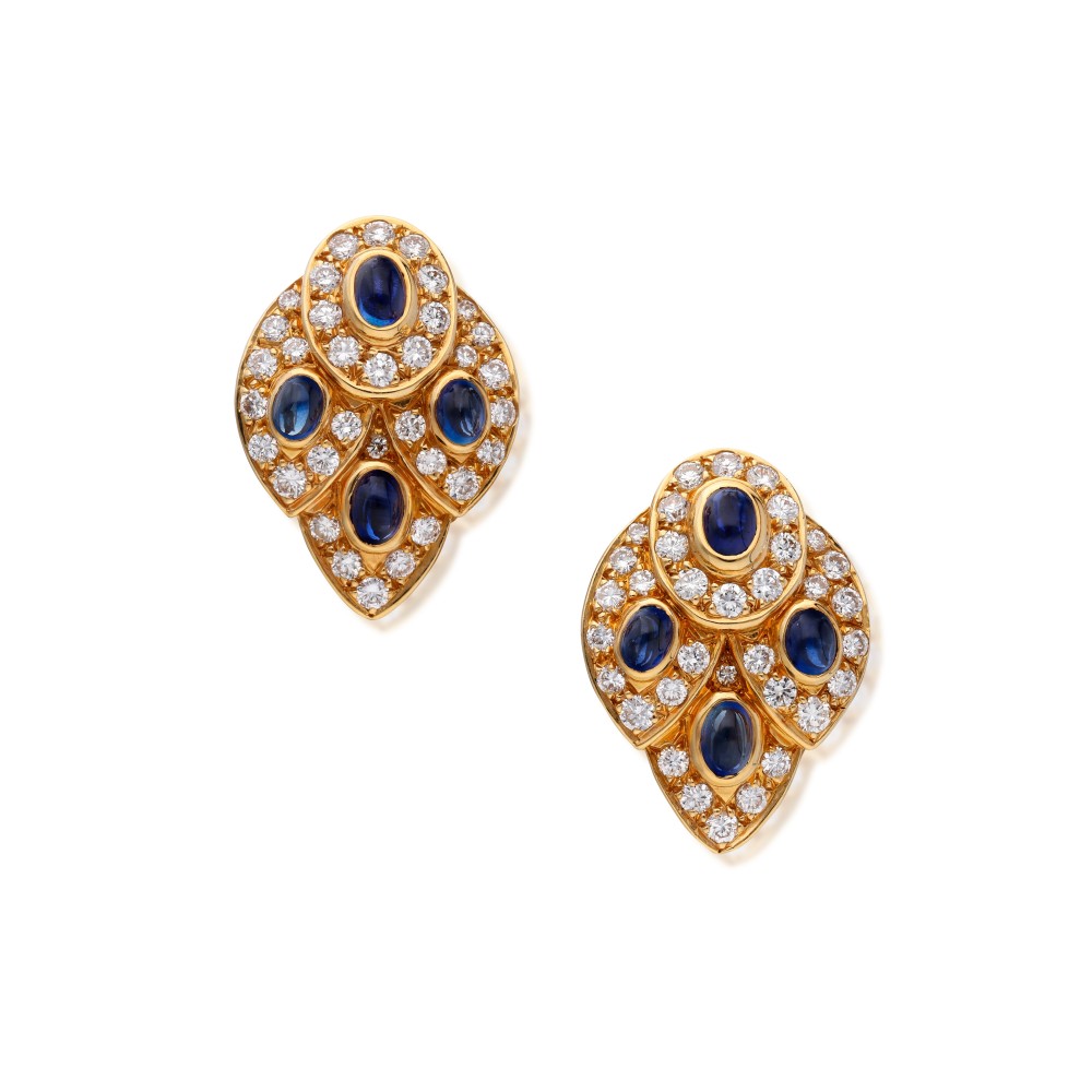 Set with sapphires and diamonds.