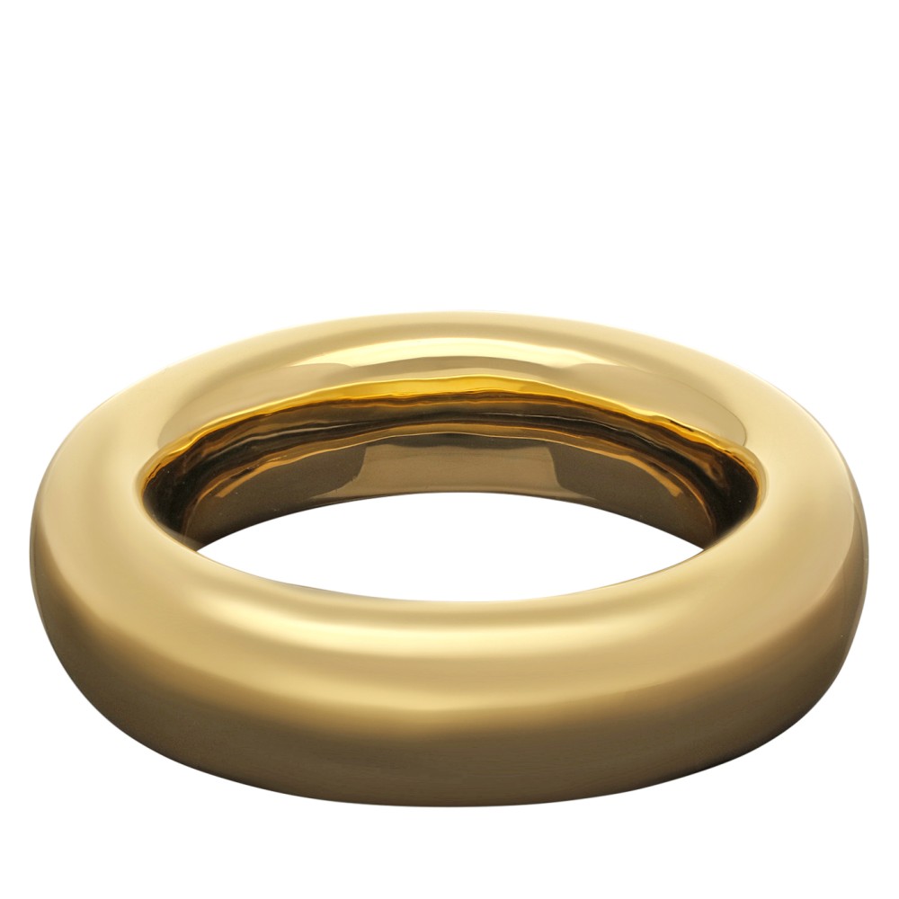 Iconic oval-shaped doughnut bangle formed of a complete rounded ring.