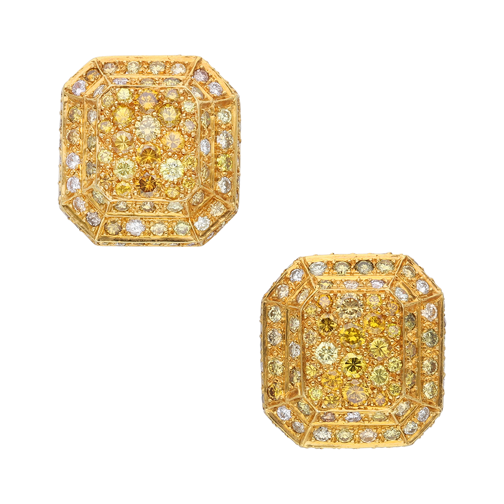 Set with varying tones of yellow and brown diamonds and accented with colorless diamonds.