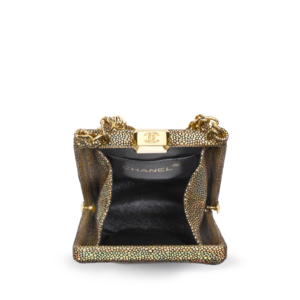 Chanel Gold Galuchat Mini Minaudi?re Gold Hardware, 2002-2002