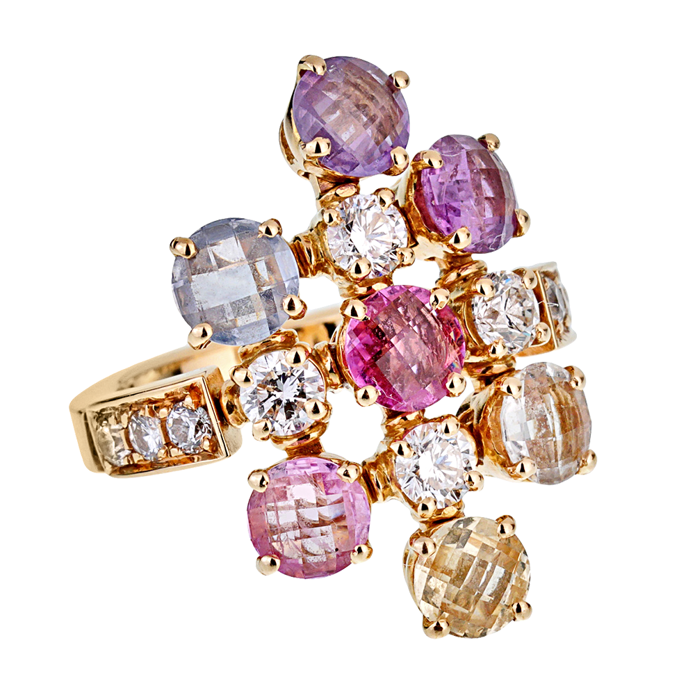 Diamond, Pink Sapphire, Sapphire, Yellow Gold, Yellow Sapphire