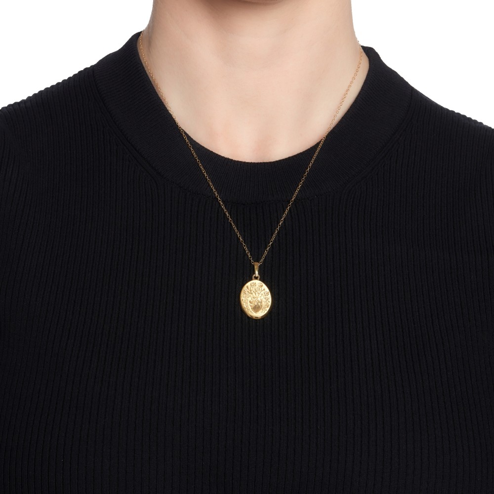 Featuring a hand-engraved floral heart design.