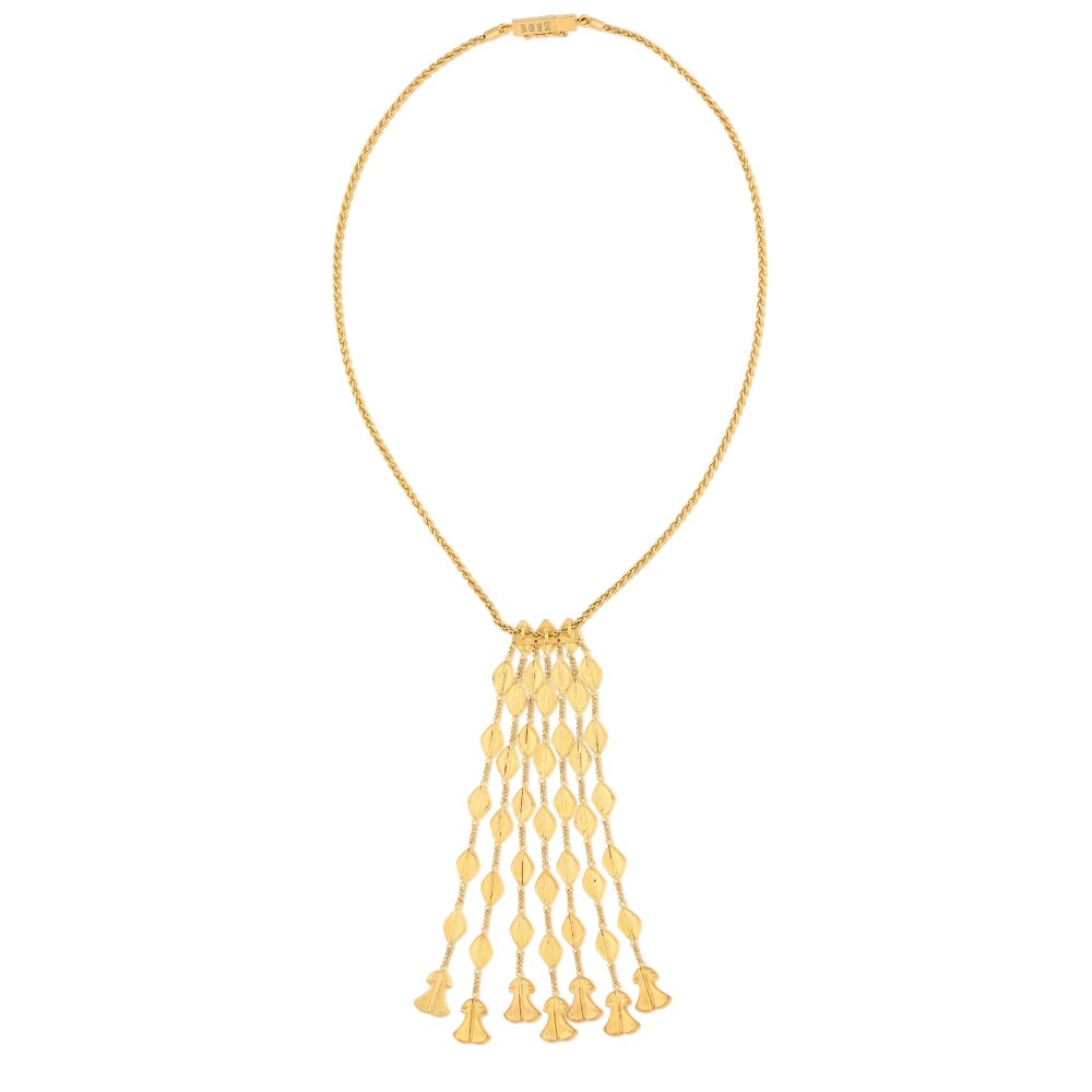 Composed of gold links and inspired by archeological jewelry.