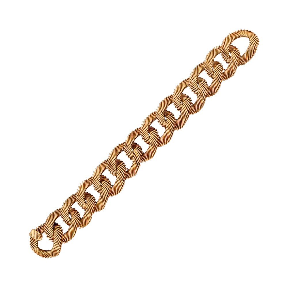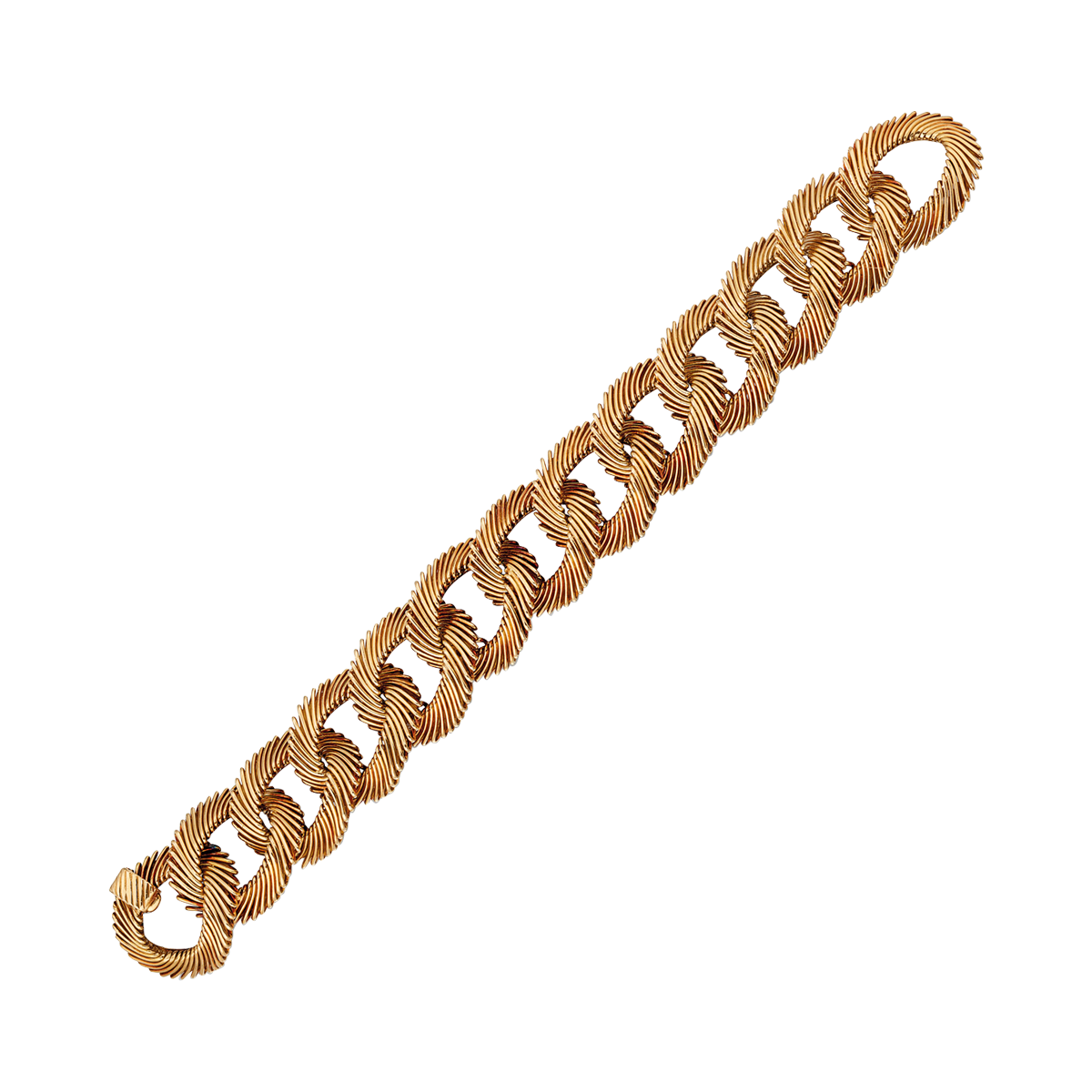 Designed as a series of interlocking links, each finely carved.