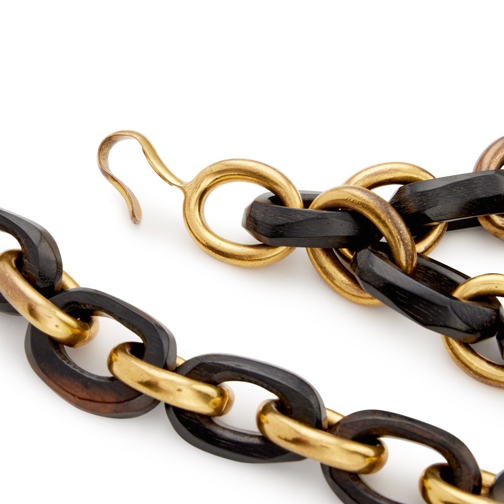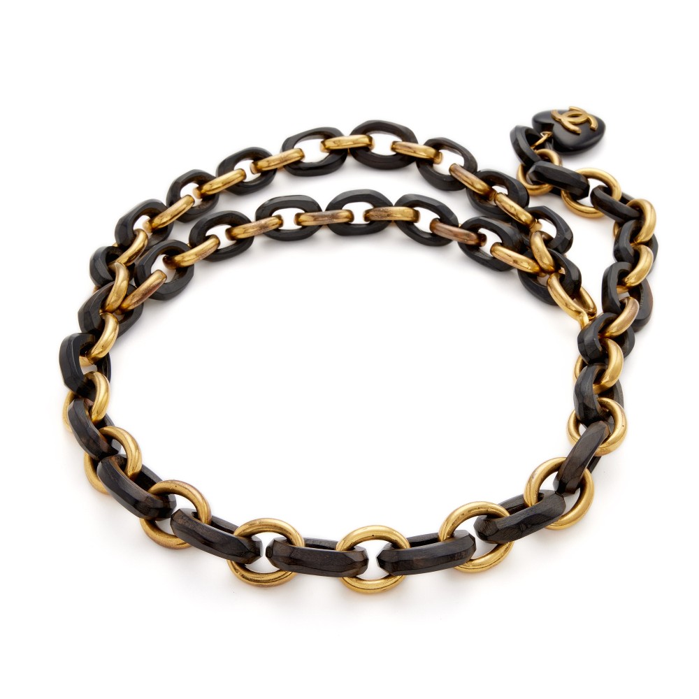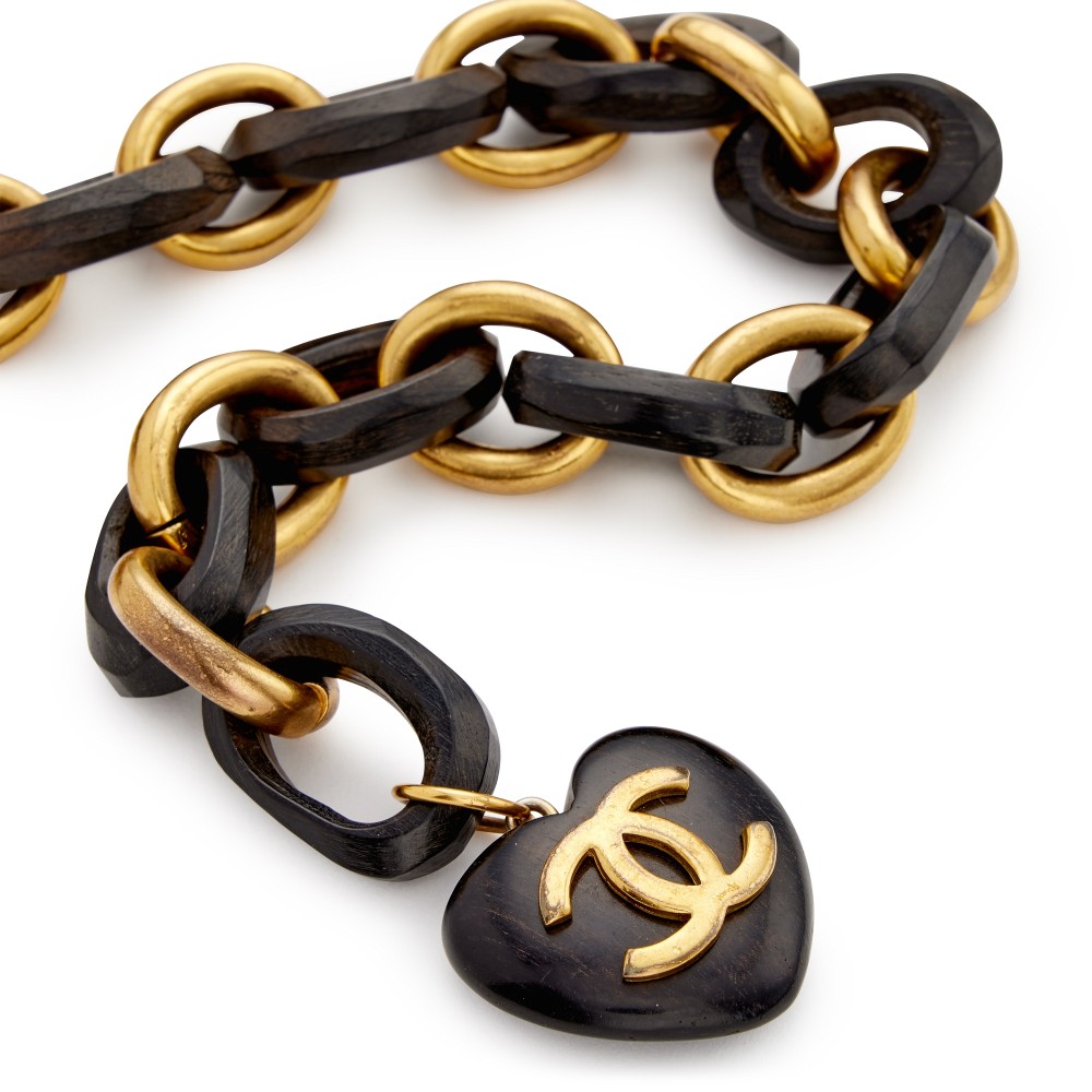 Chanel Gold Metal and Carved Wood Link CC Heart Belt, 1991