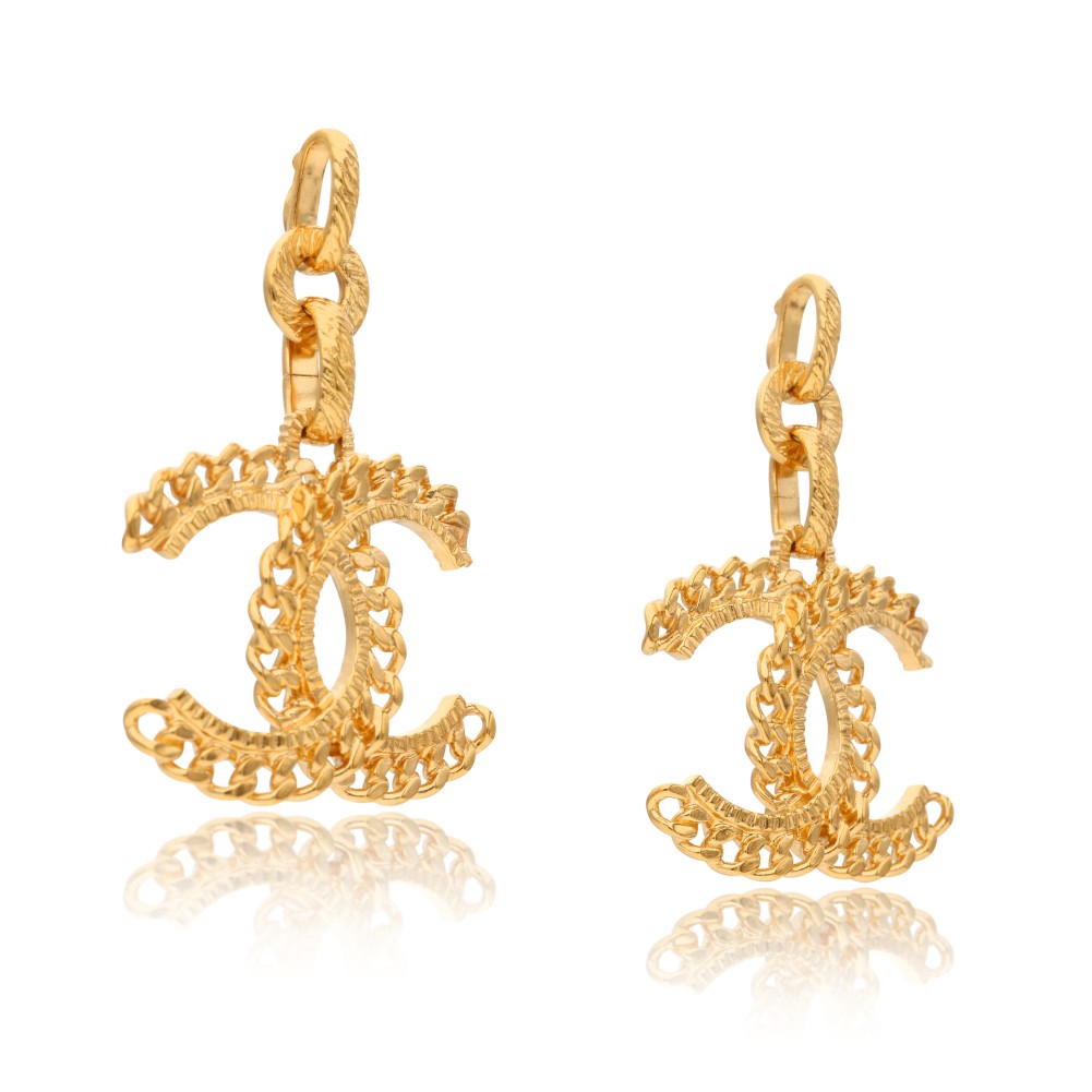 Chanel Gold Metal CC Chain Drop Earrings, 2020