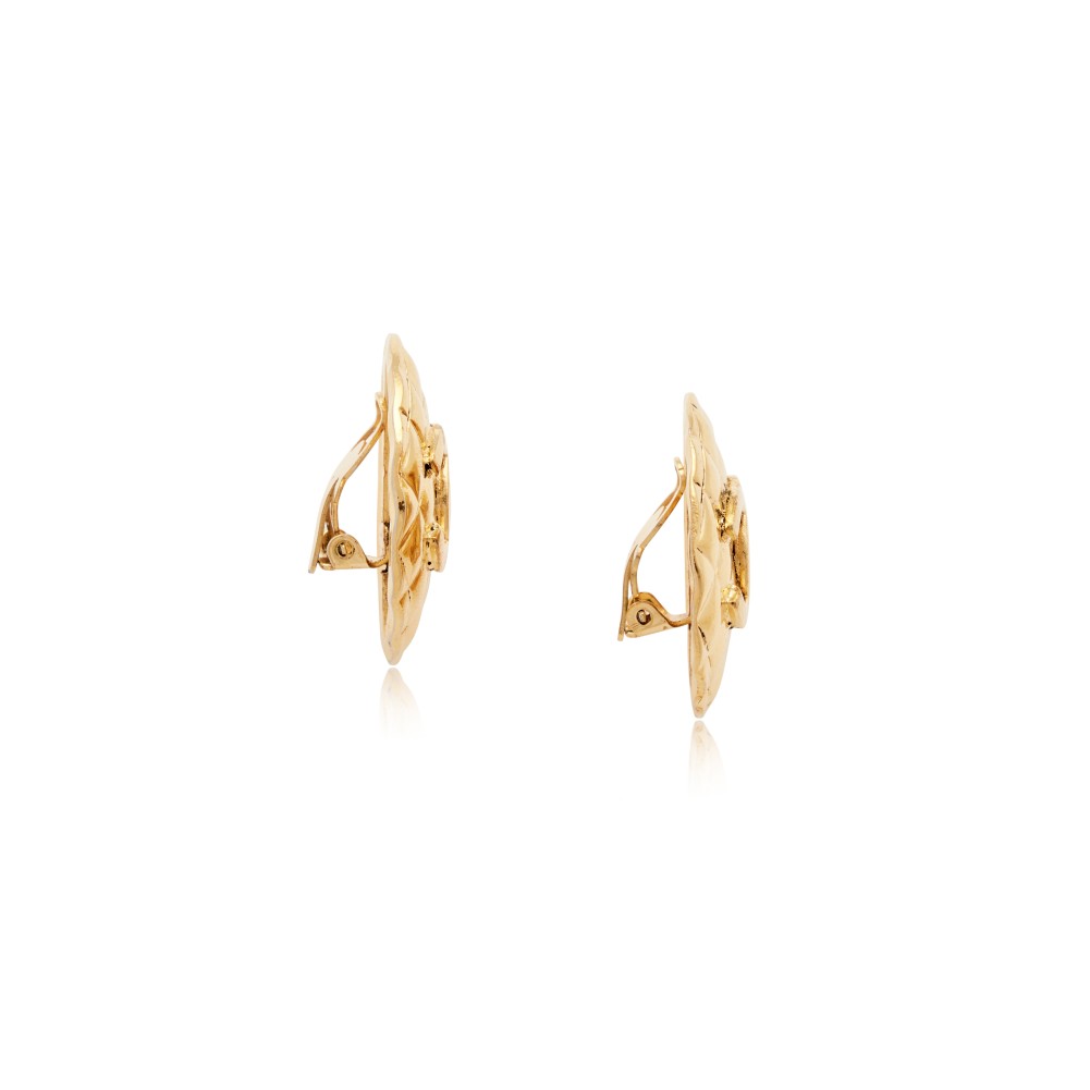 Chanel Gold Metal CC Quilted Earrings, 1980s