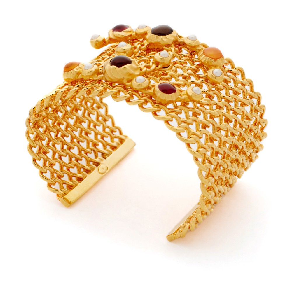 Chanel Gold Metal, Imitation Pearl, Gripoix CC Chain Cuff Size M, 2018