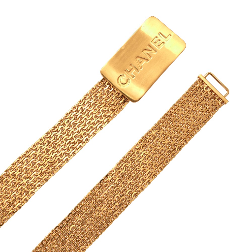 Chanel Gold Metal Logo Plaque Belt, 1996
