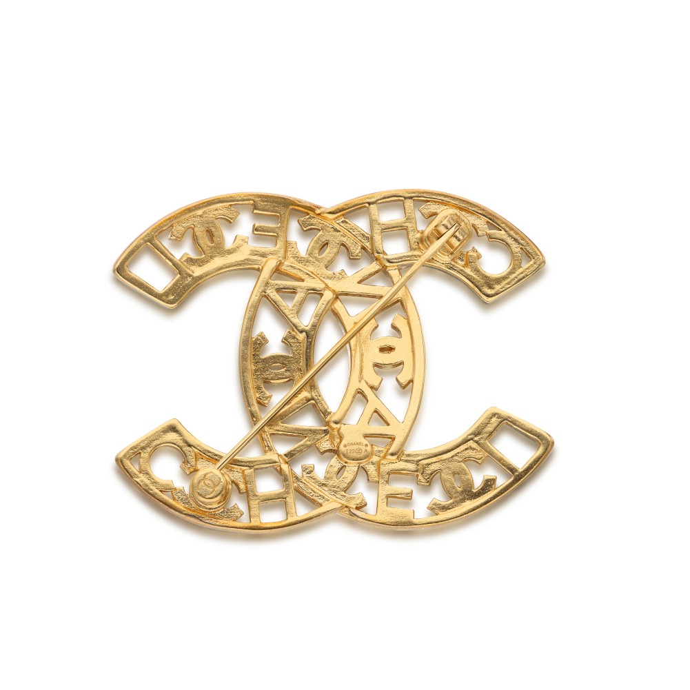 Chanel Gold Metal, Strass Coco CC Logo Brooch, 2022