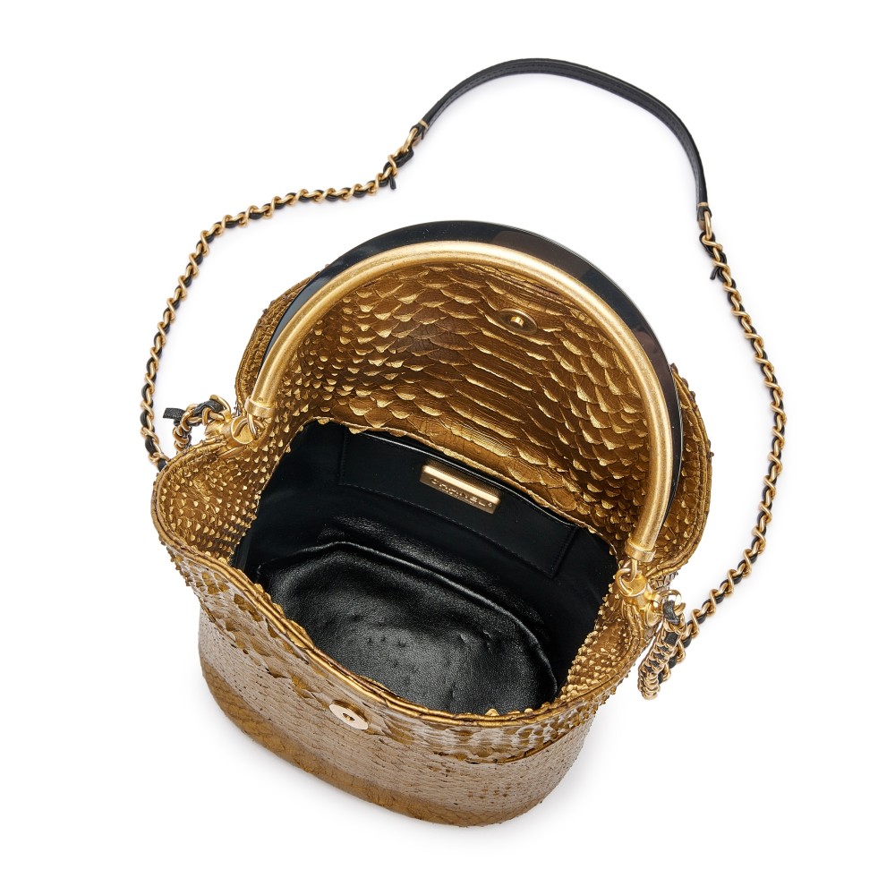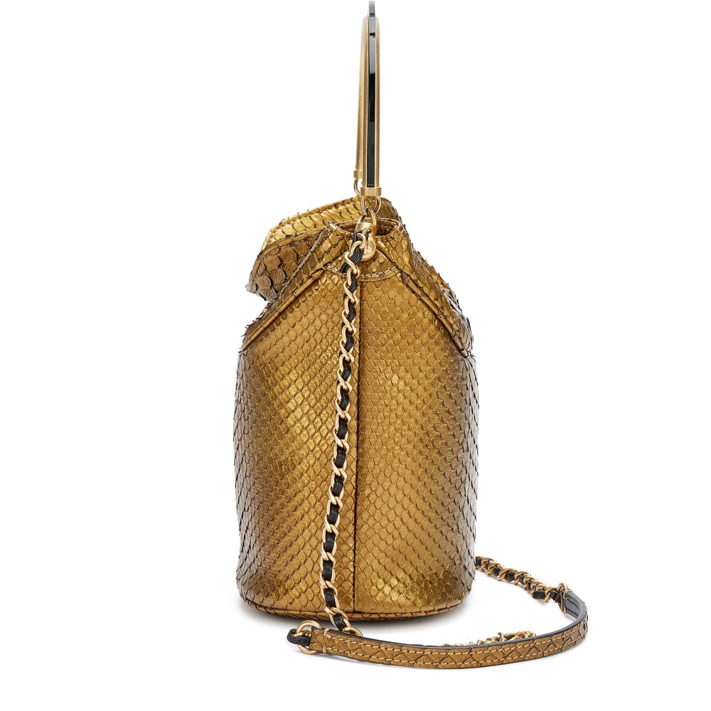 Chanel Gold Python Top Handle Bucket Bag with Chain Gold Hardware, 2018-19