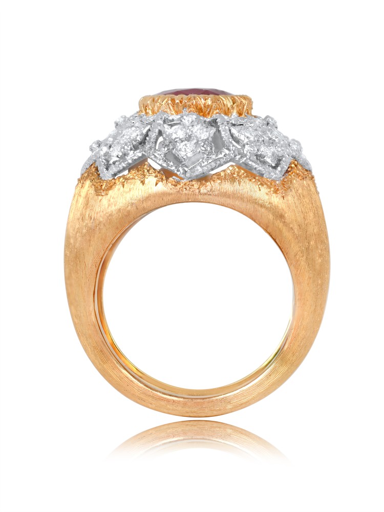 - Ruby weighing 3.38 carats