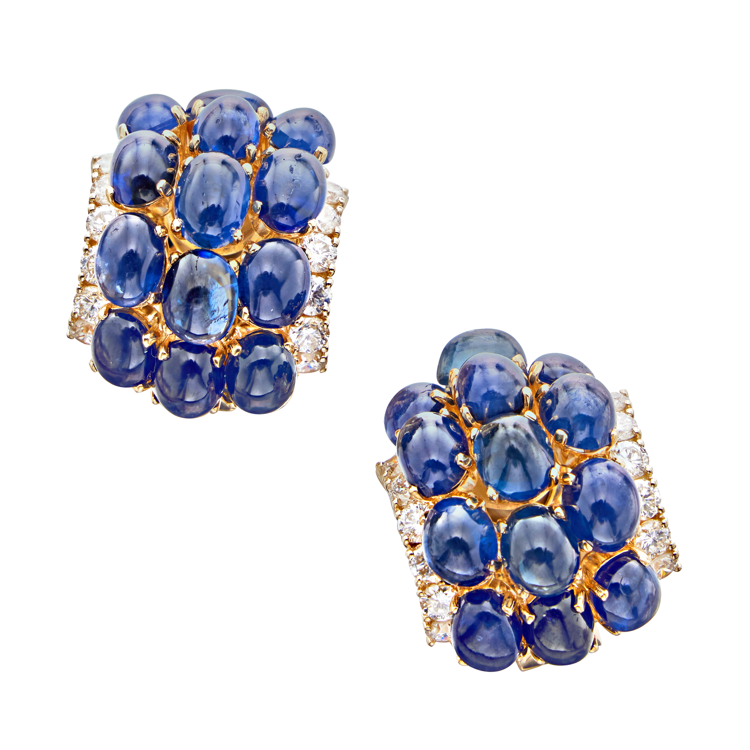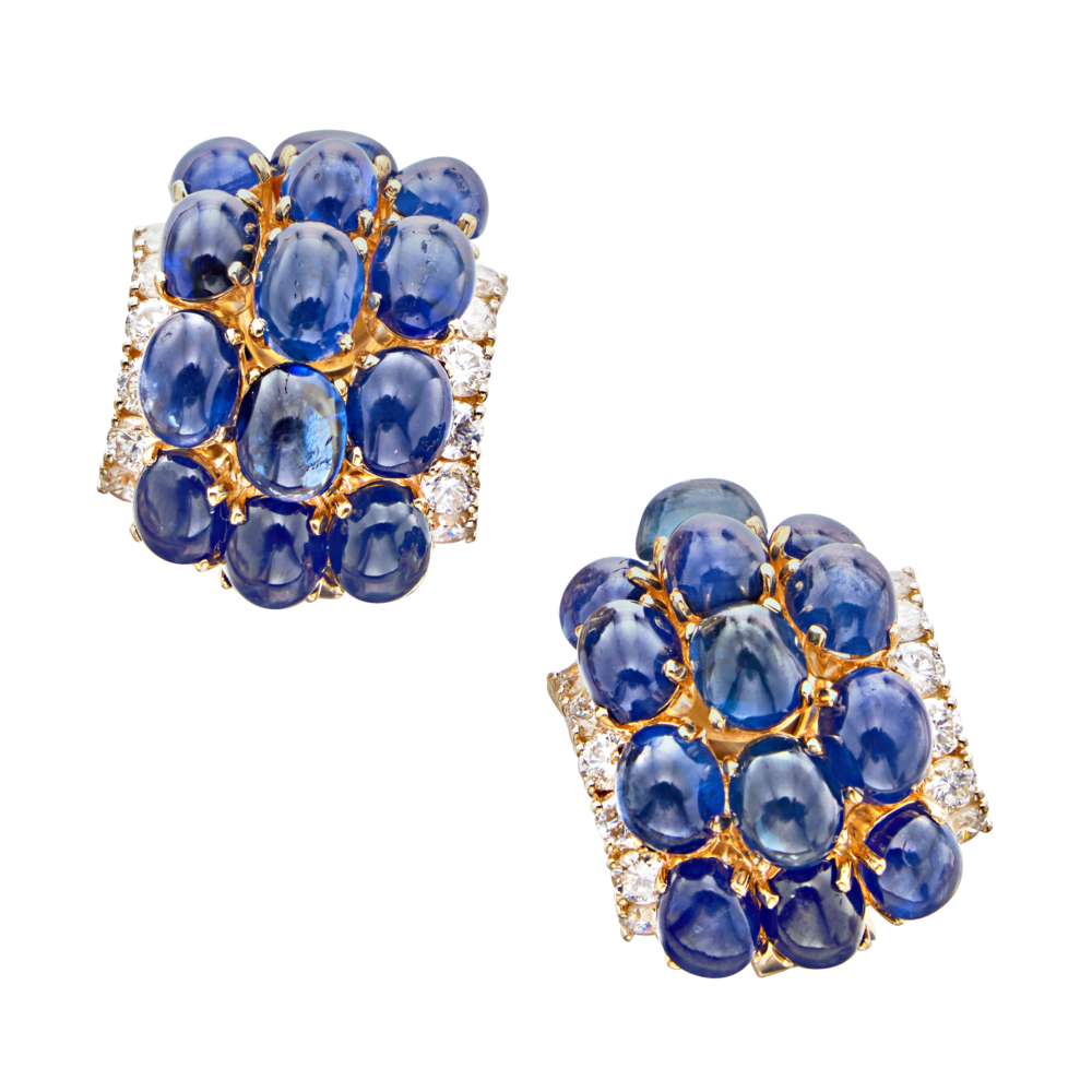 Set with cabochon sapphires and diamonds.