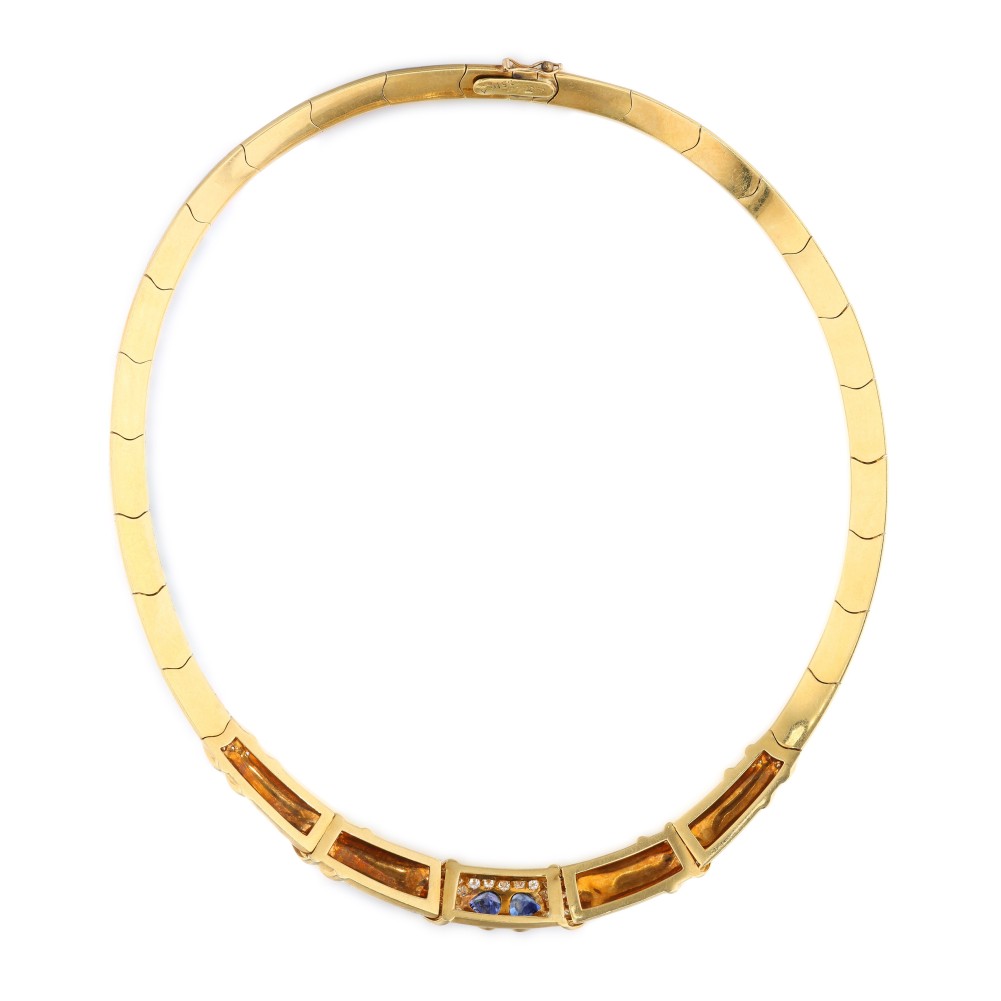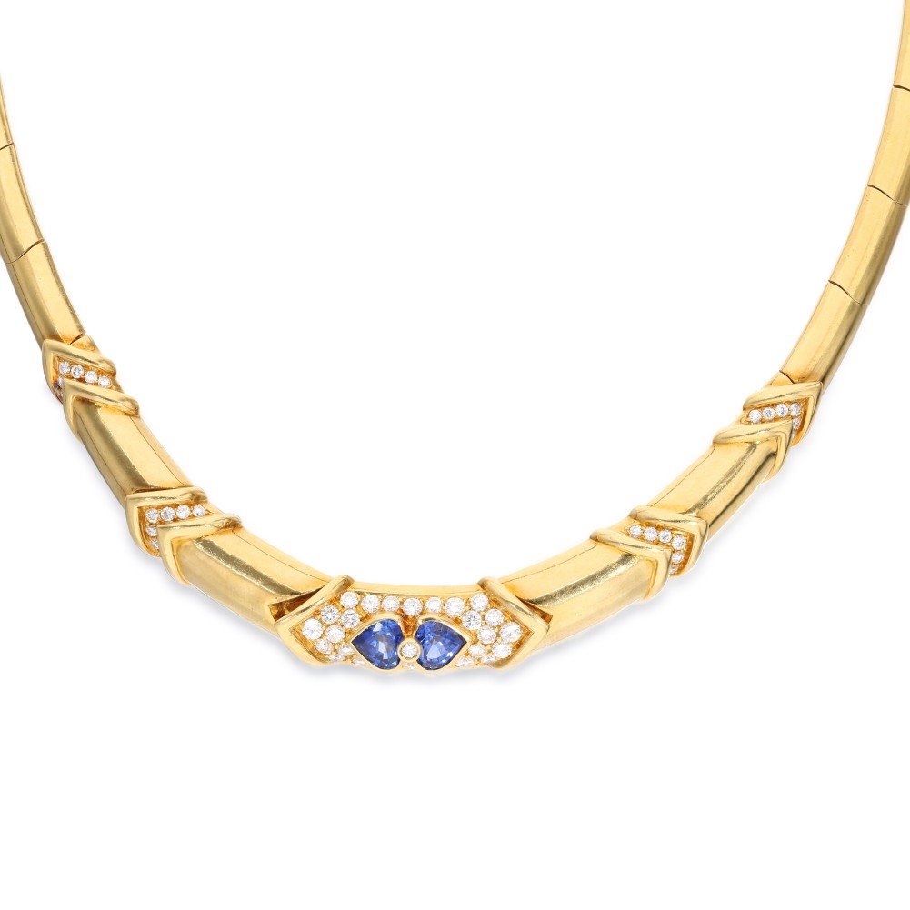Composed of heart shaped sapphire and round brilliant cut diamonds.