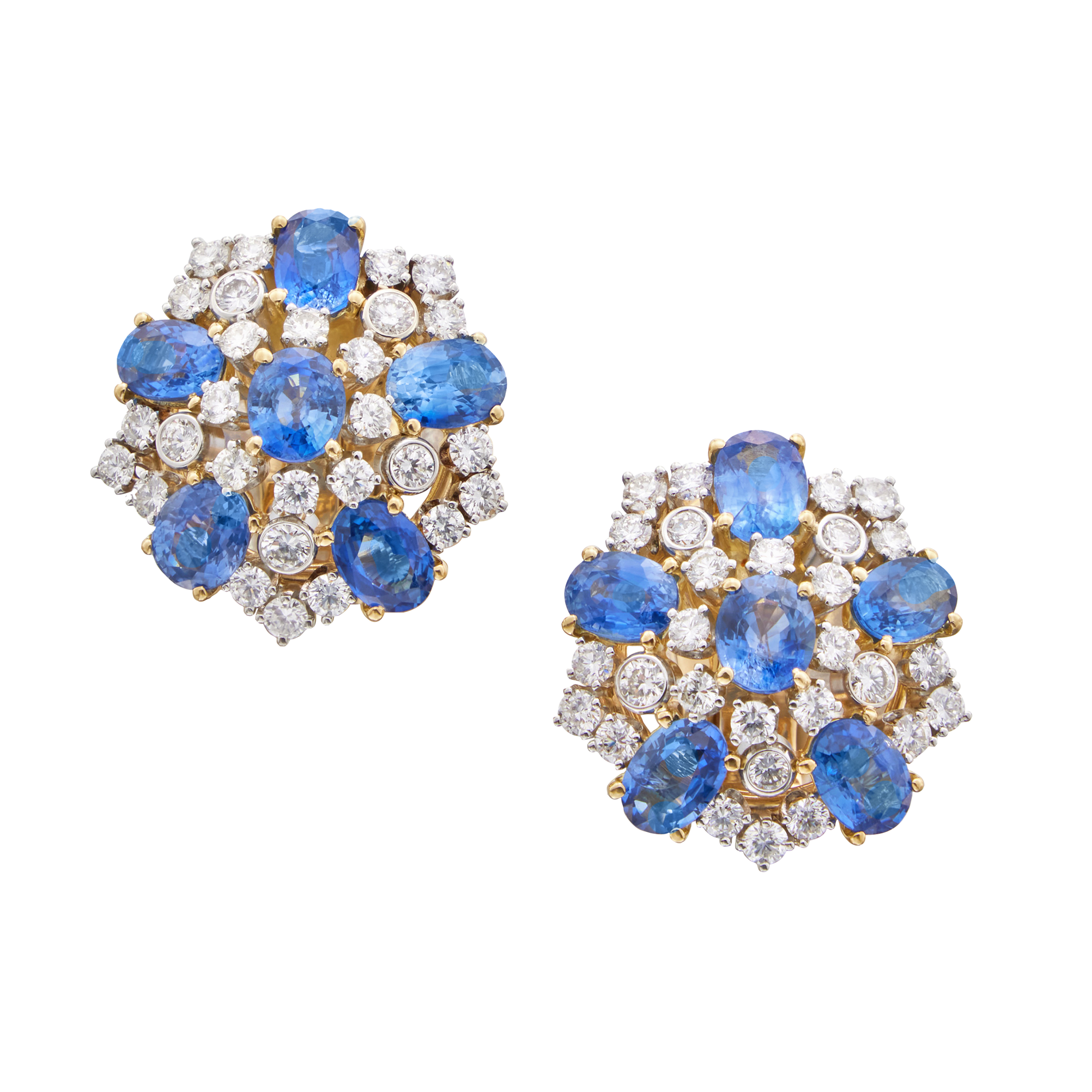 Set with sapphires and round-shaped diamonds.