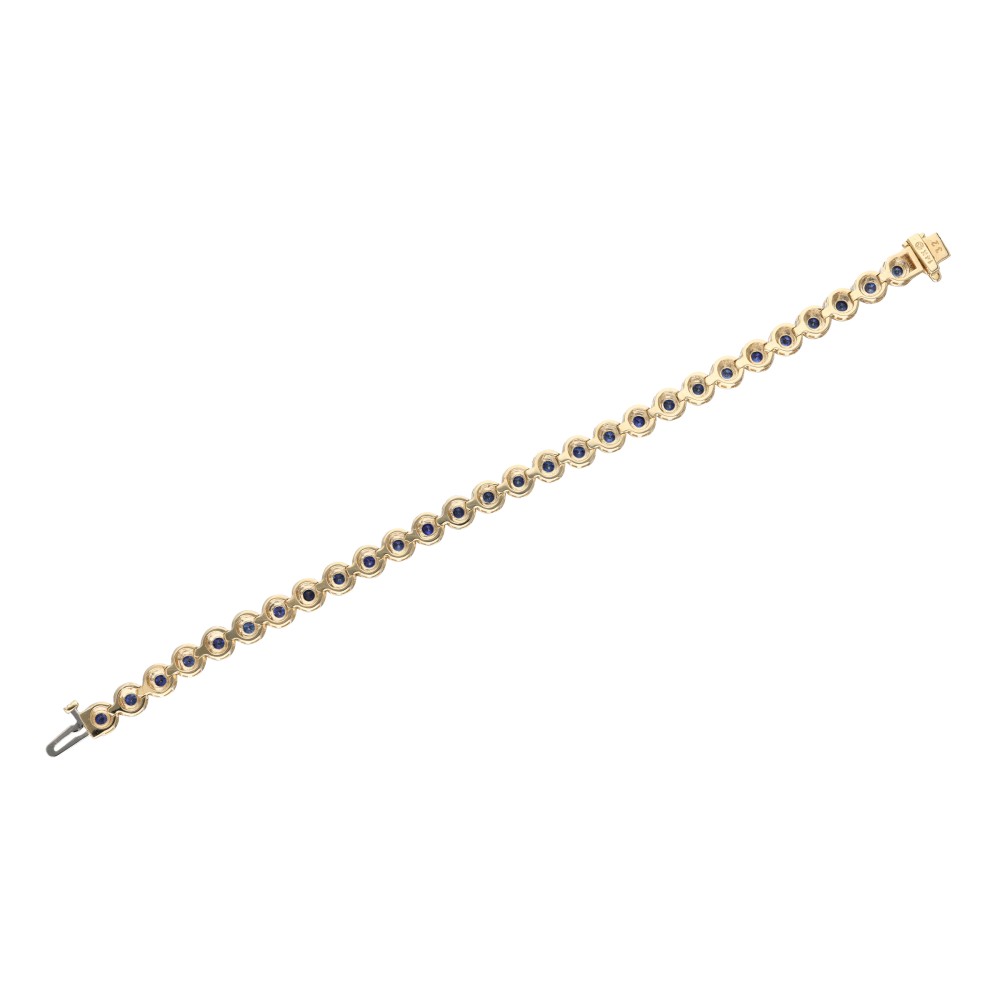 Set with round sapphires and diamond frame.