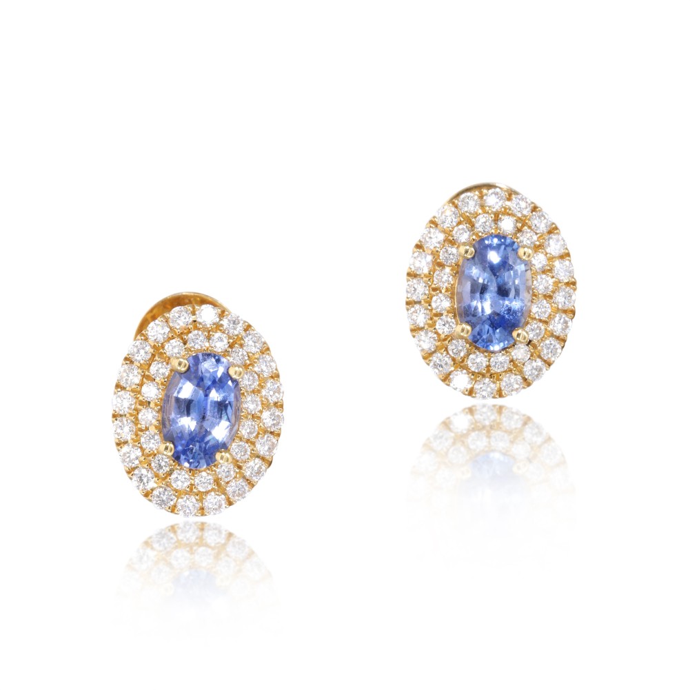 Composed of oval-shaped sapphires and accented by round brilliant-cut diamonds.