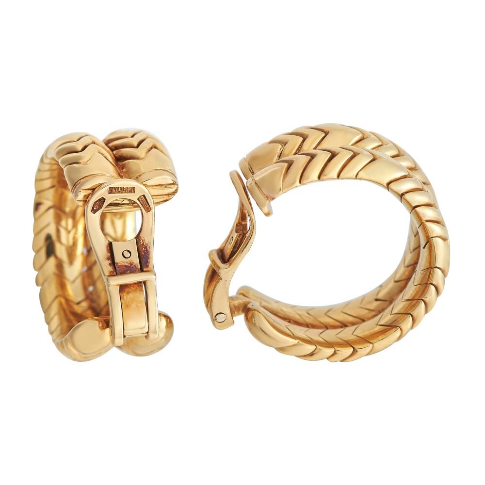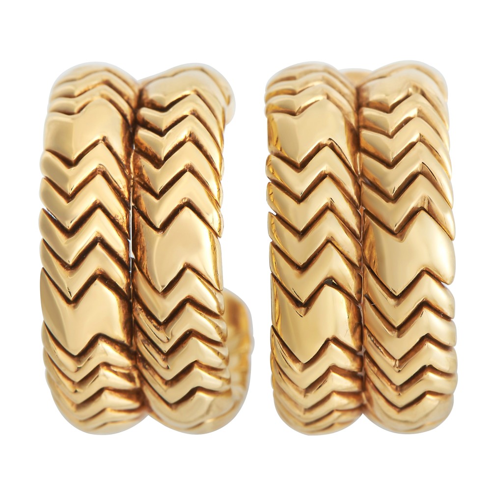The earclips of hoop design, featuring a snake-like chevron pattern.