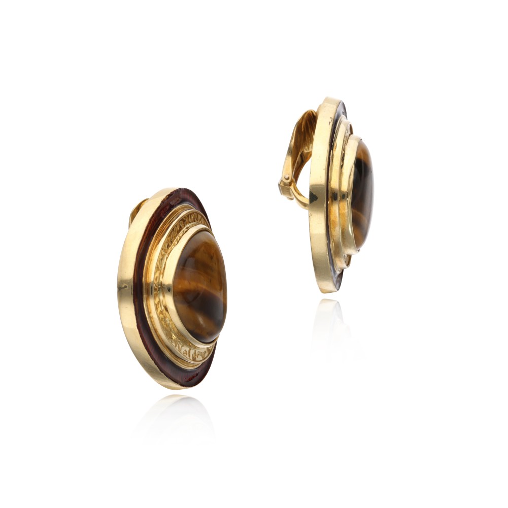 Enamel, Gold, Tiger's Eye, Yellow Gold