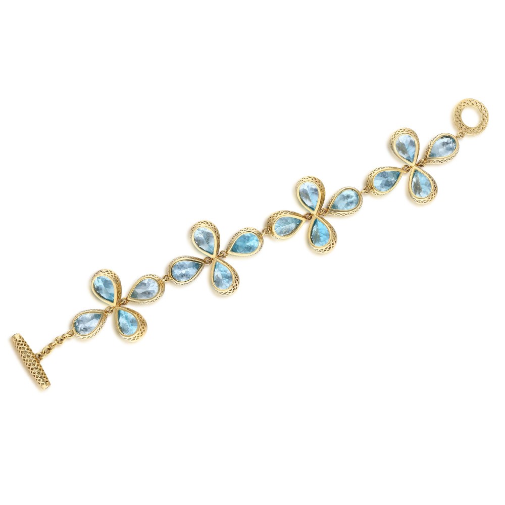 Composed of pear-shaped blue topaz.