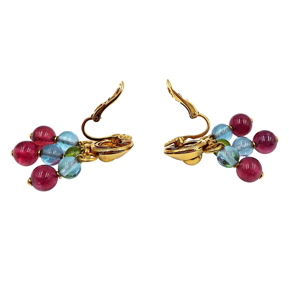 Set with 2 peridot beads, 6 aquamarine beads and 6 tourmaline beads.