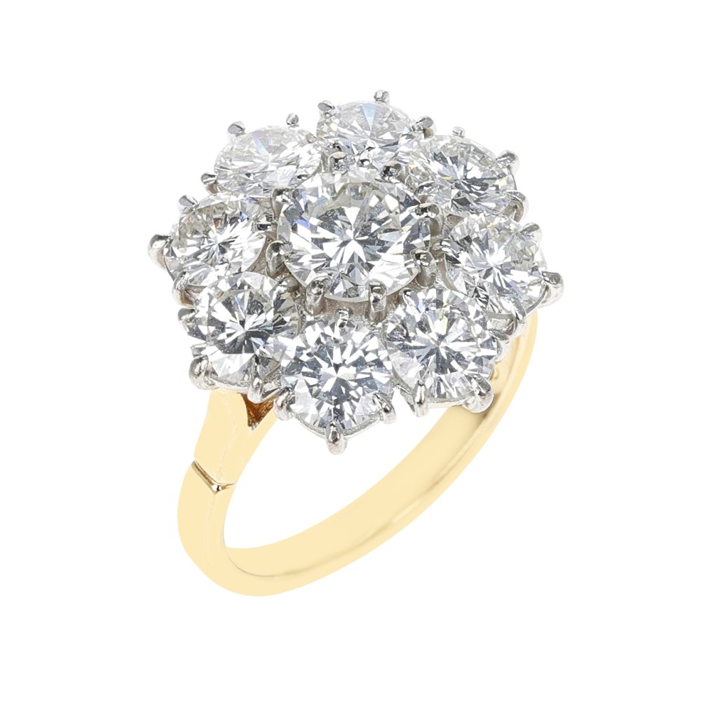 Featuring 9 round diamonds cluster.