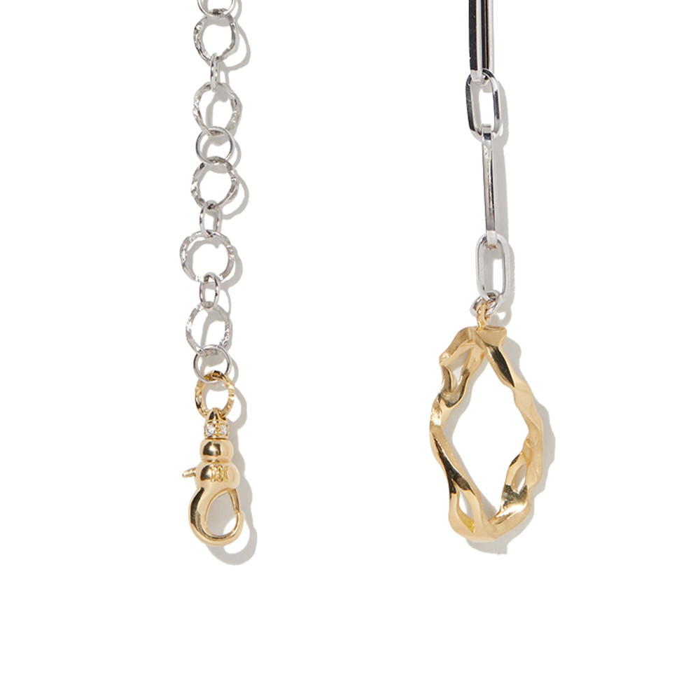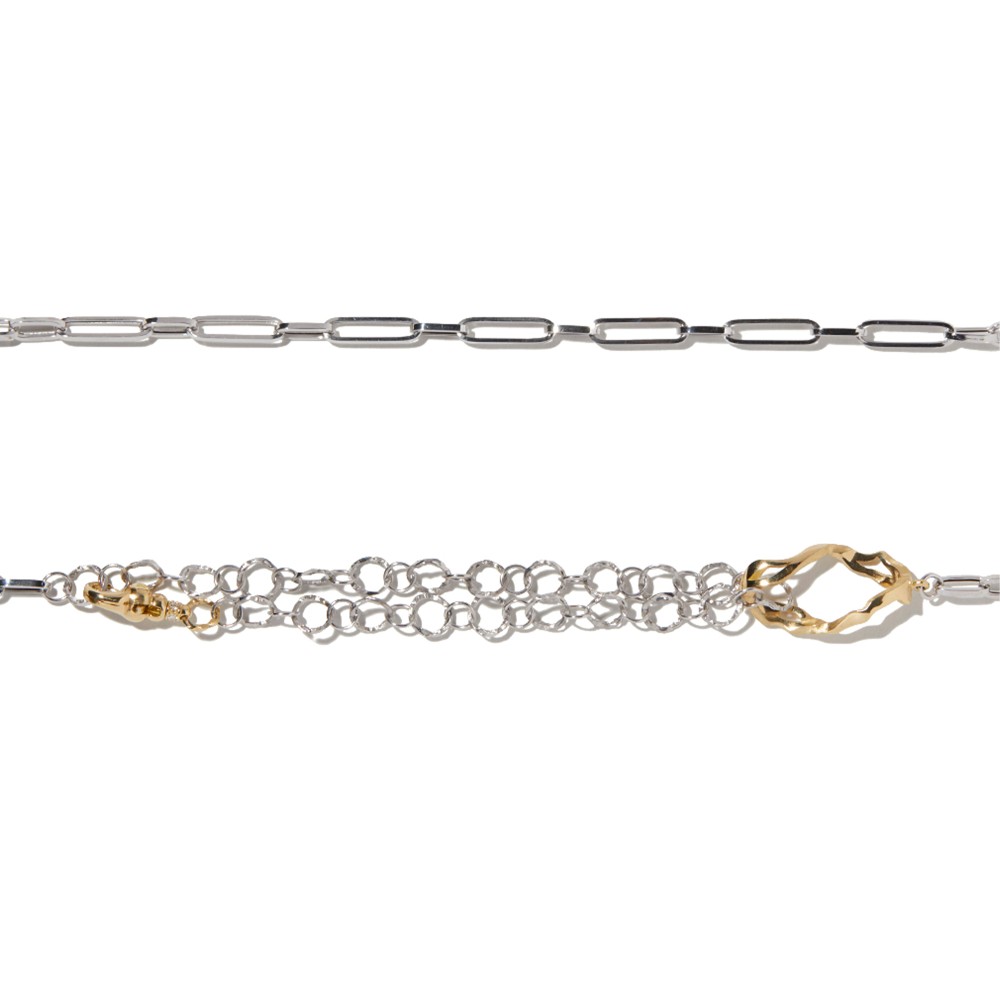 Featuring different shapes of links with a yellow gold clasp, accented by round diamonds.