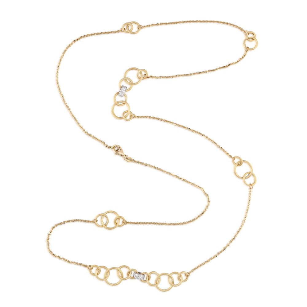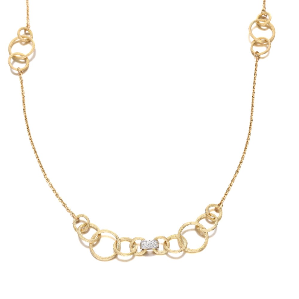 Composed of round brilliant-cut diamonds alternating with satin textured links.
