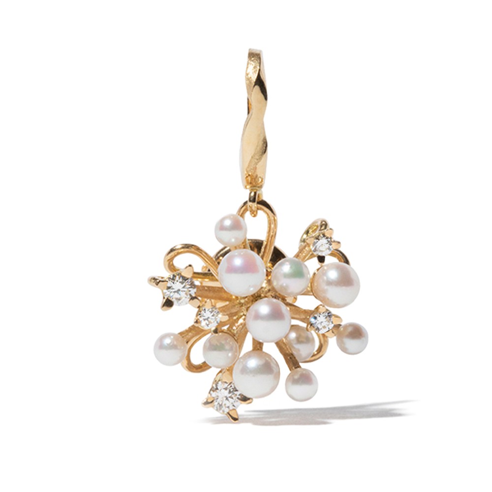 Of spark of fireworks design, composed of numerous cultured pearls and round diamonds.