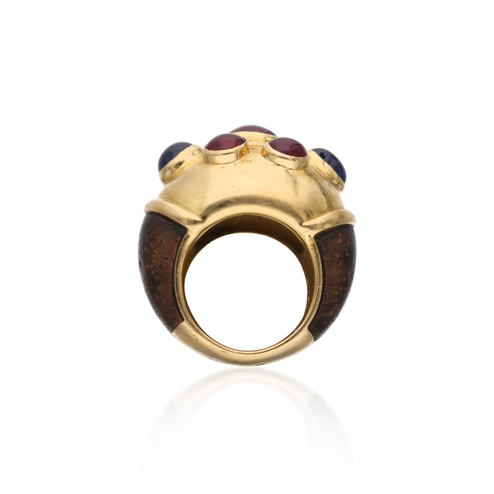 Gold, Ruby, Sapphire, Wood, Yellow Gold