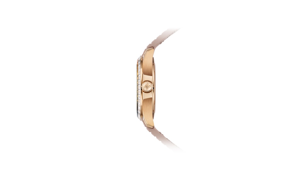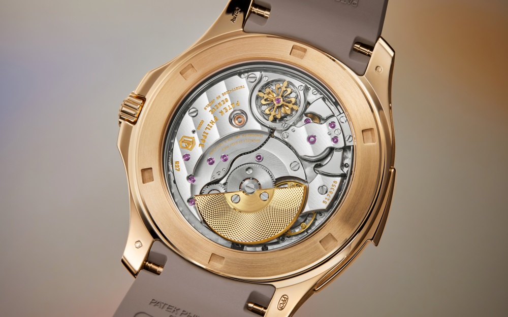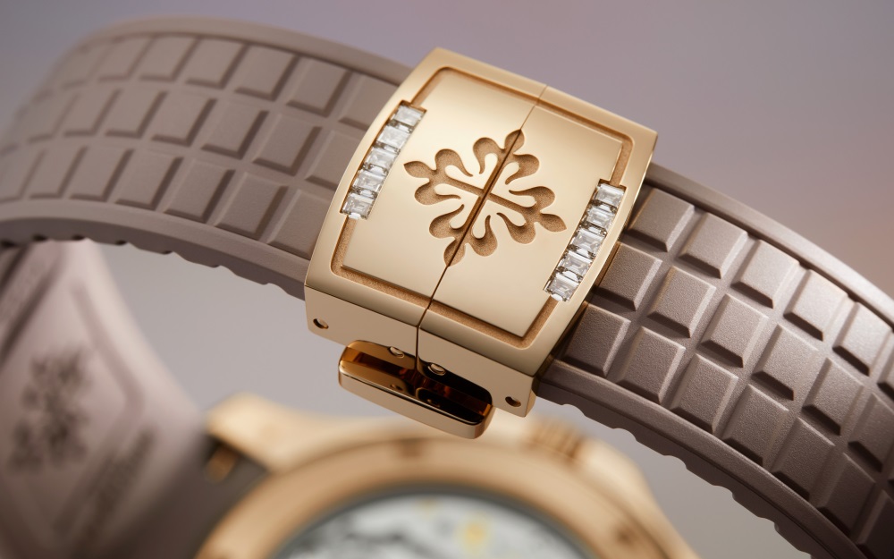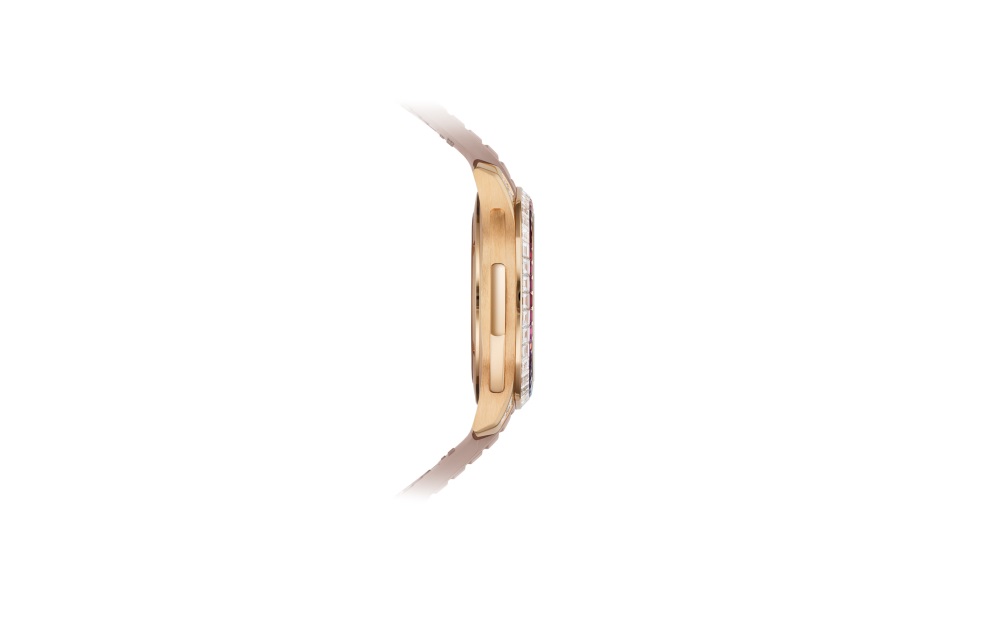 The first Aquanaut Luce minute repeater, this self-winding model is adorned with 52 multicolored baguette-cut sapphires (3.19 cts), 112 baguette-cut diamonds (7.31 cts) and 160 brilliant-cut diamonds (0.72 ct).