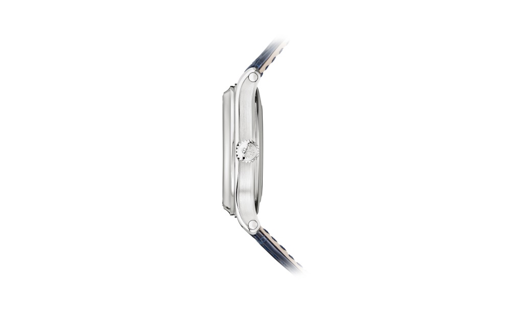 The Reference 5374 Grand Complication with minute repeater and perpetual calendar combines technical excellence and elegance in a new white gold version with a Grand Feu blue enamel dial featuring a glossy finish. The case shape is distinguished by its subtle interplay of curves and its concave bezel. The minute repeater with its ?cathedral” gongs wrapping almost twice around the movement is distinguished by its rich, deep sound.