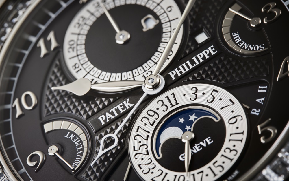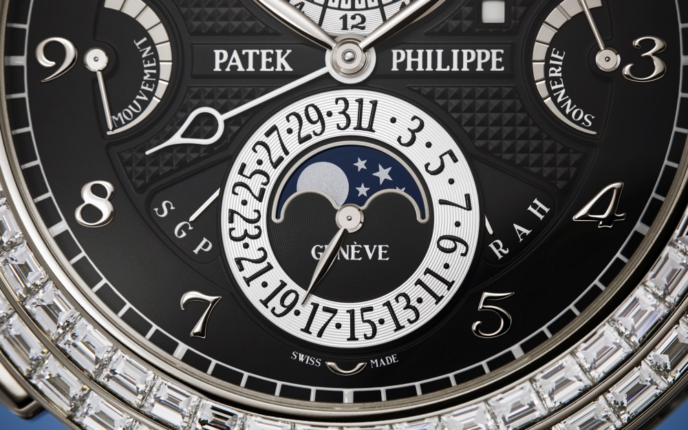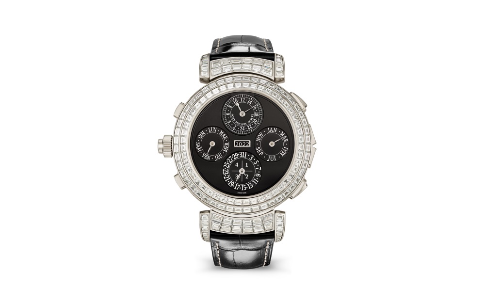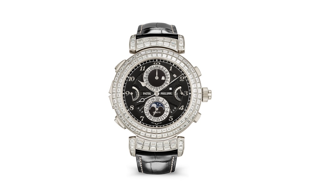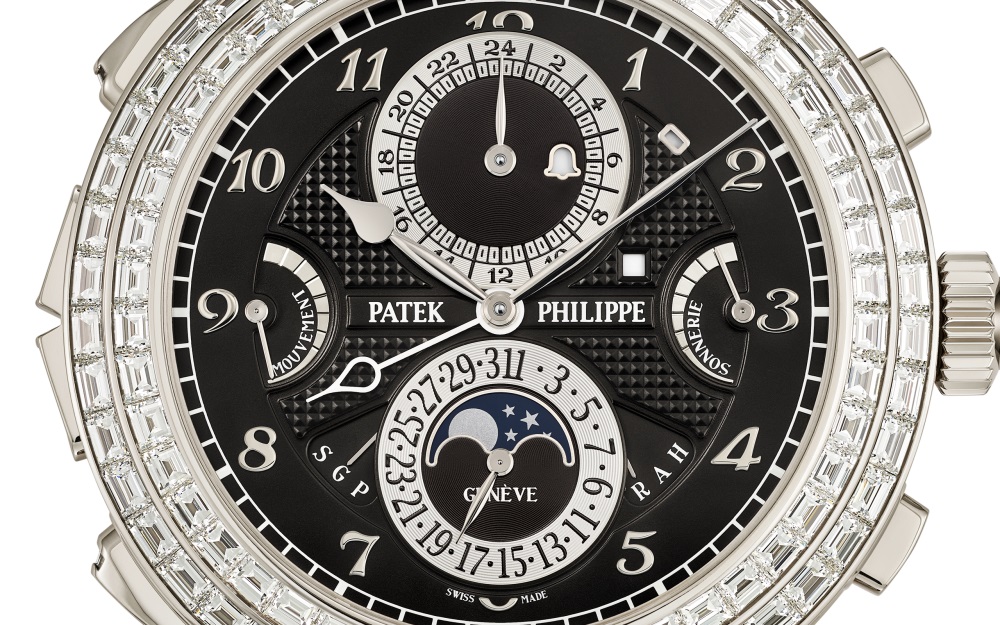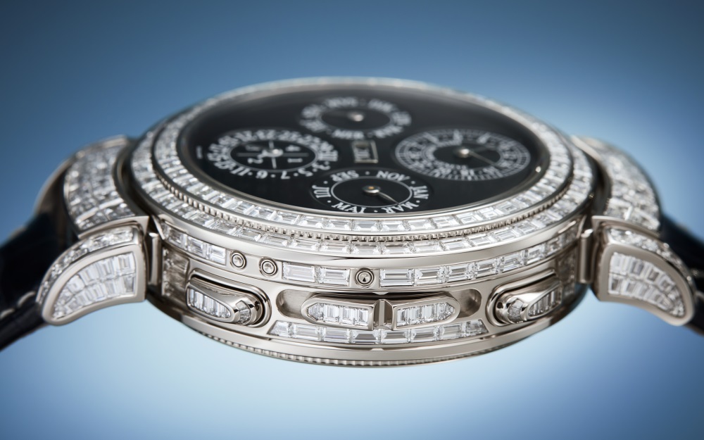 Patek Philippe enhances the mechanical sophistication of its most complicated wristwatch in a white gold Haute Joaillerie version adorned with 409 baguette-cut diamonds (31.35 cts) and “invisible setting”.