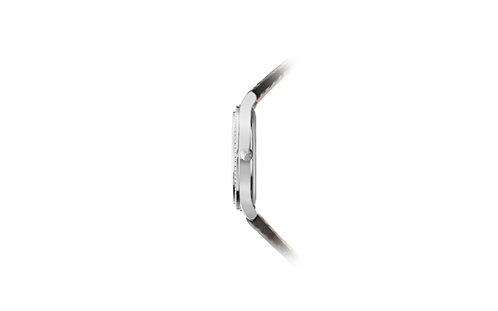 The ultra-thin self-winding Ladies First Perpetual Calendar is now available in a new white-gold model that complements the rose-gold version. The diamond-set bezel deflects the light on a silvery sunburst dial with applied numerals and minute pearls in gold. A Grand Complication with incomparable feminine appeal.
