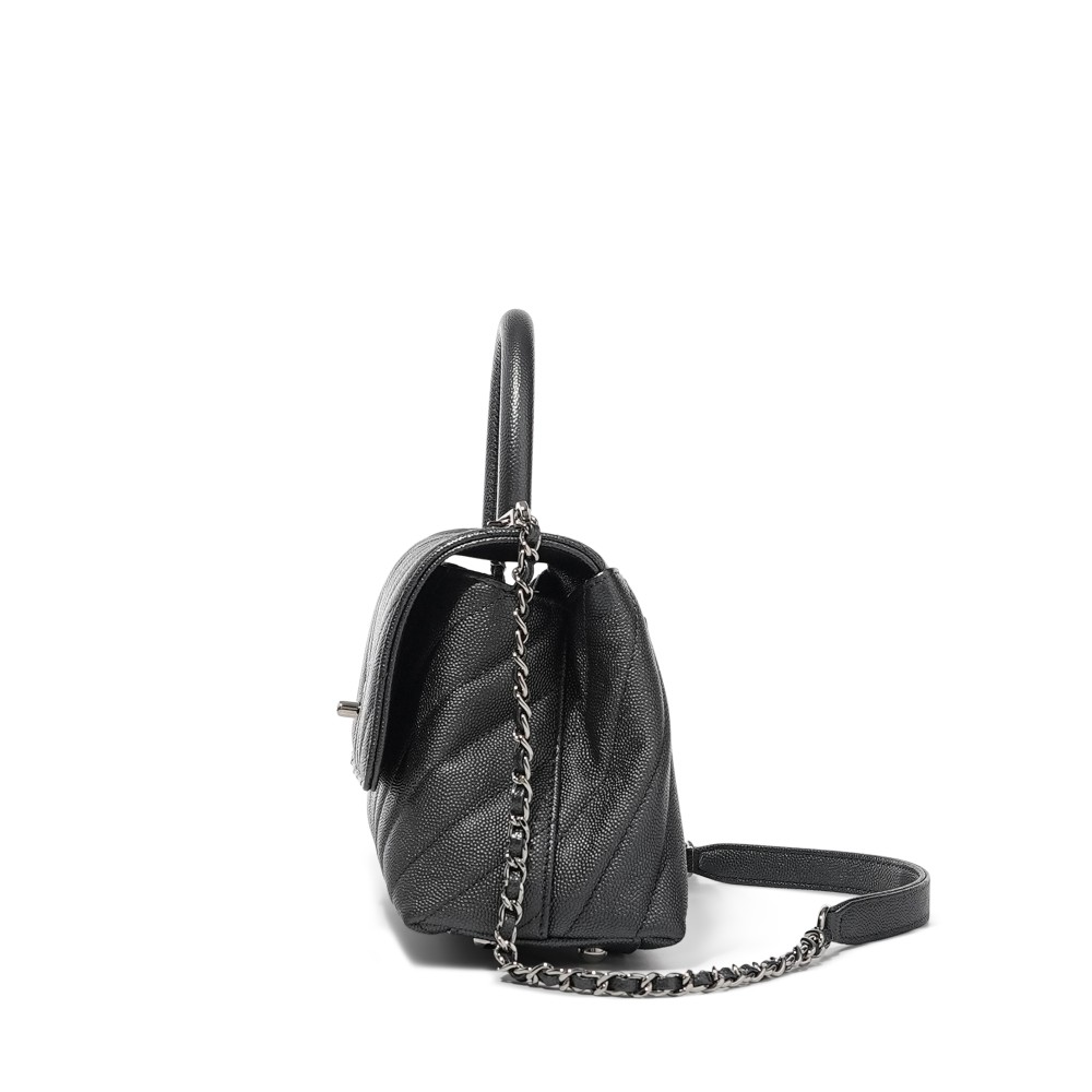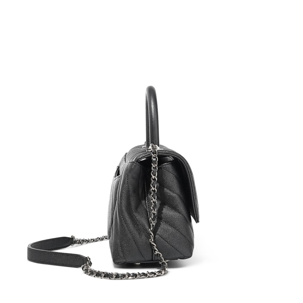 Chanel Grey Chevron Caviar Small Coco Top Handle Flap Bag Silver Hardware, 2020