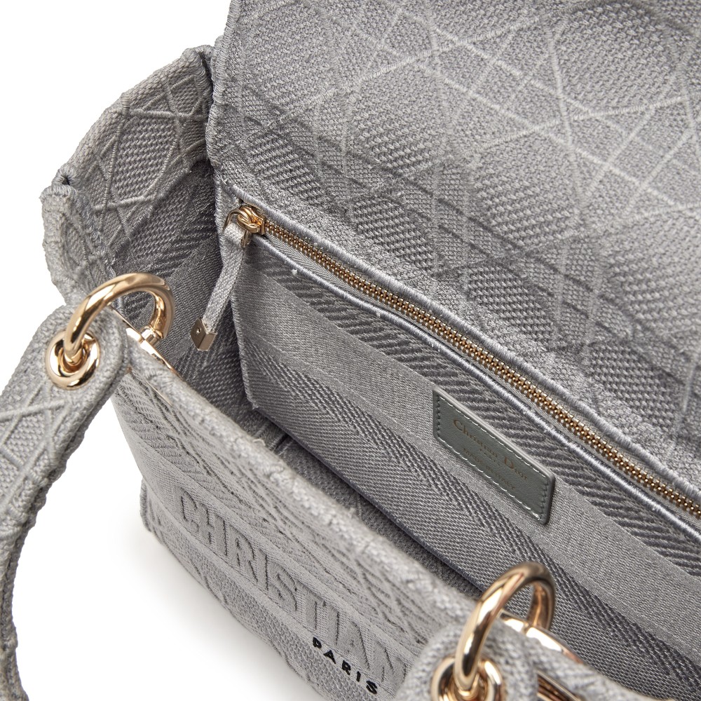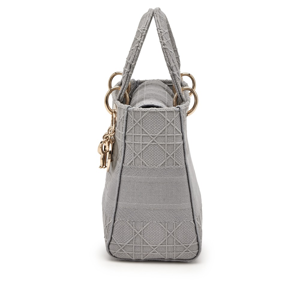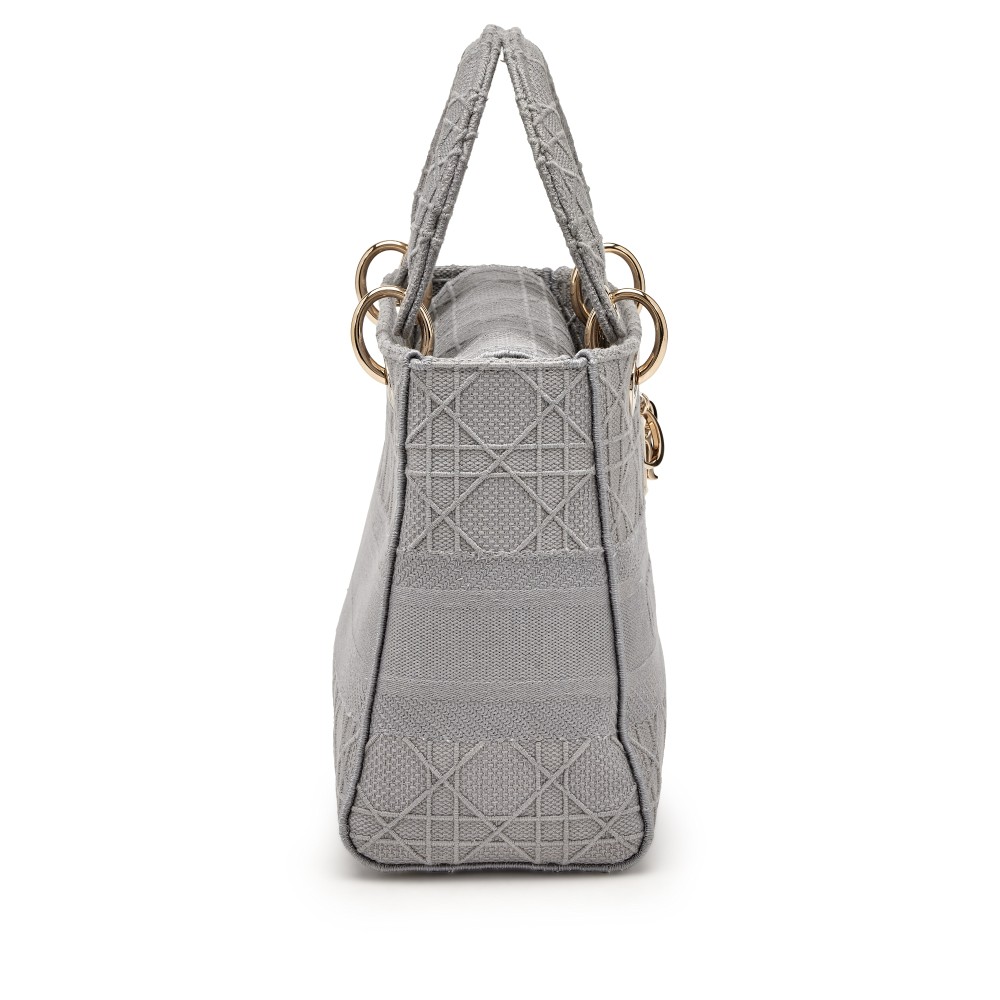 Christian Dior Grey Embroidered Canvas Medium Lady D-lite Gold Hardware, 2020