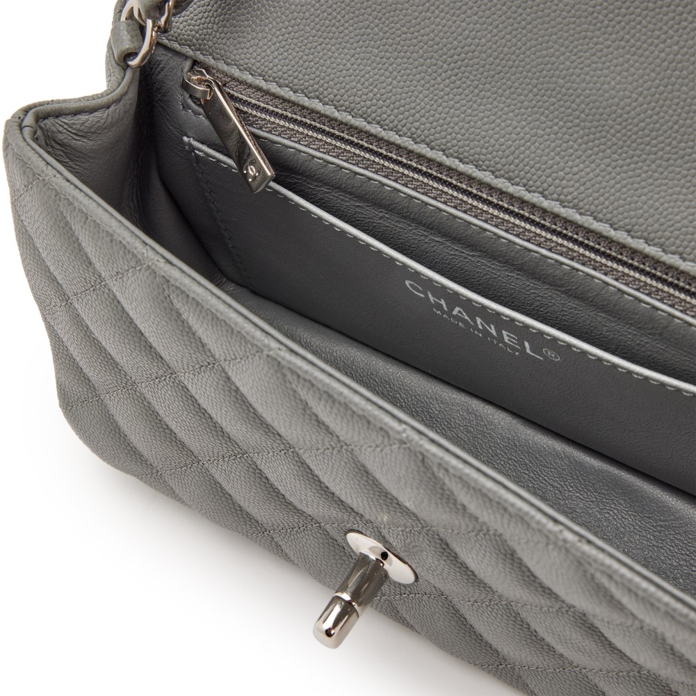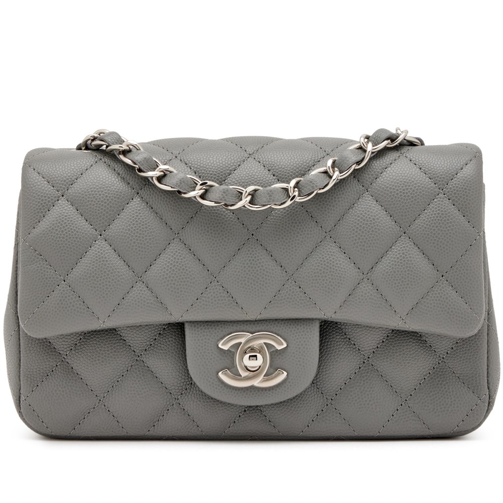 Chanel Grey Quilted Caviar Mini Rectangular Classic Flap Silver Hardware, 2017