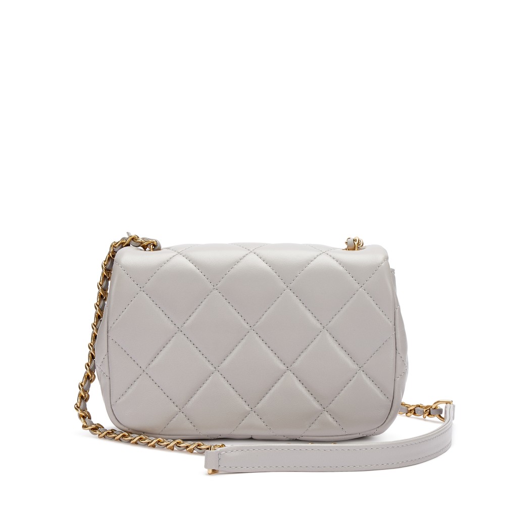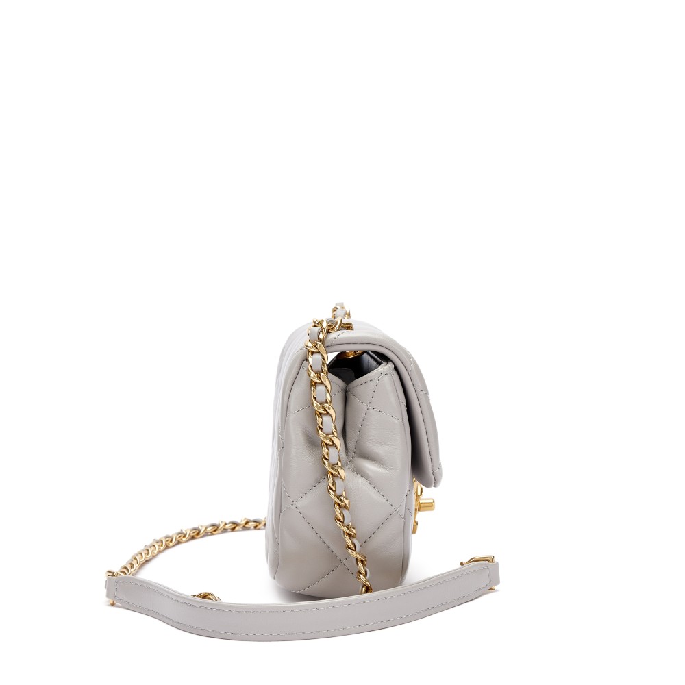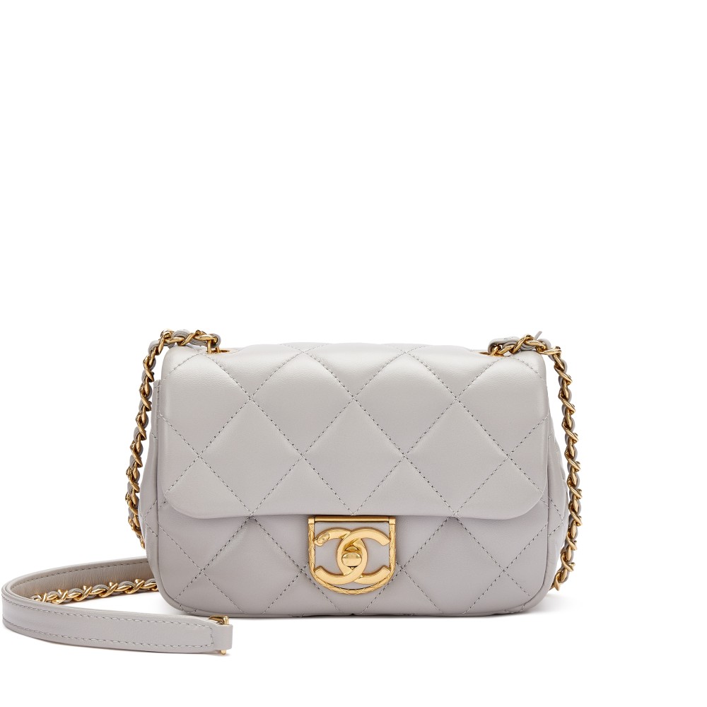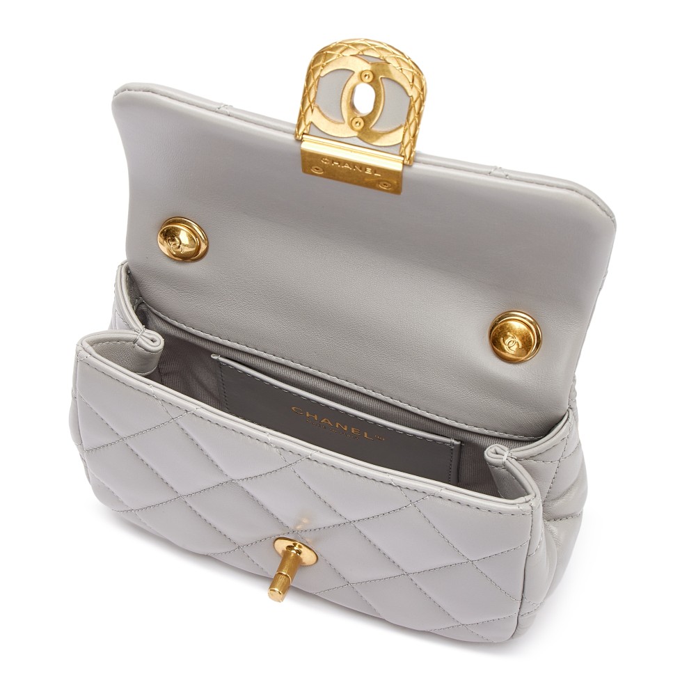 Chanel Grey Quilted Lambskin Flap Bag Gold Hardware