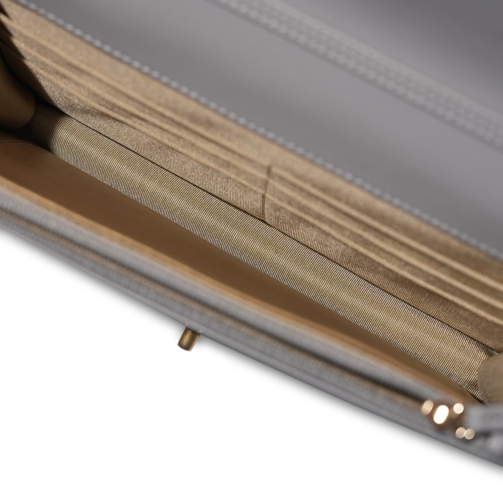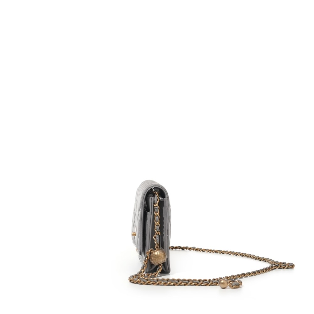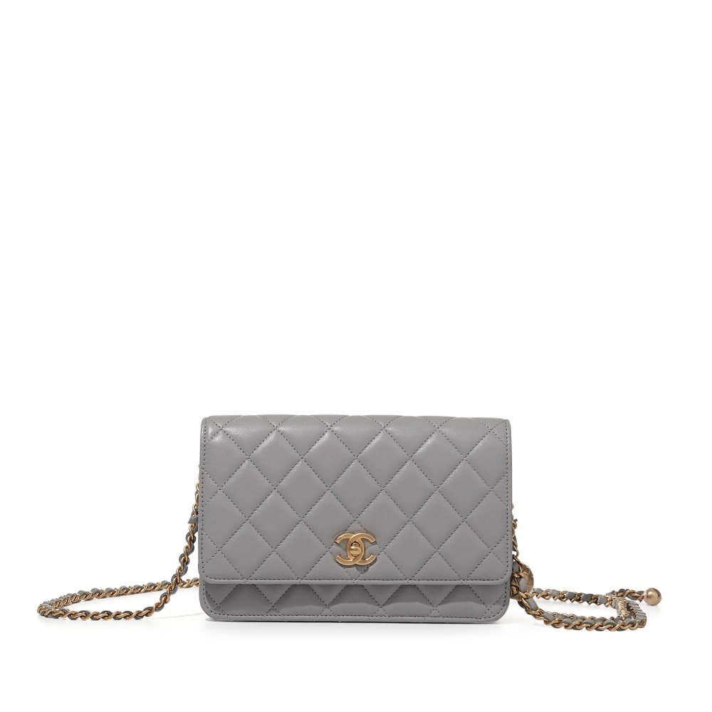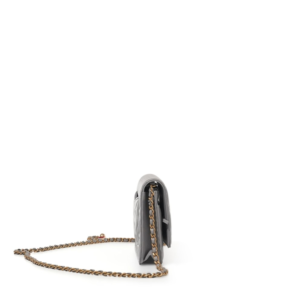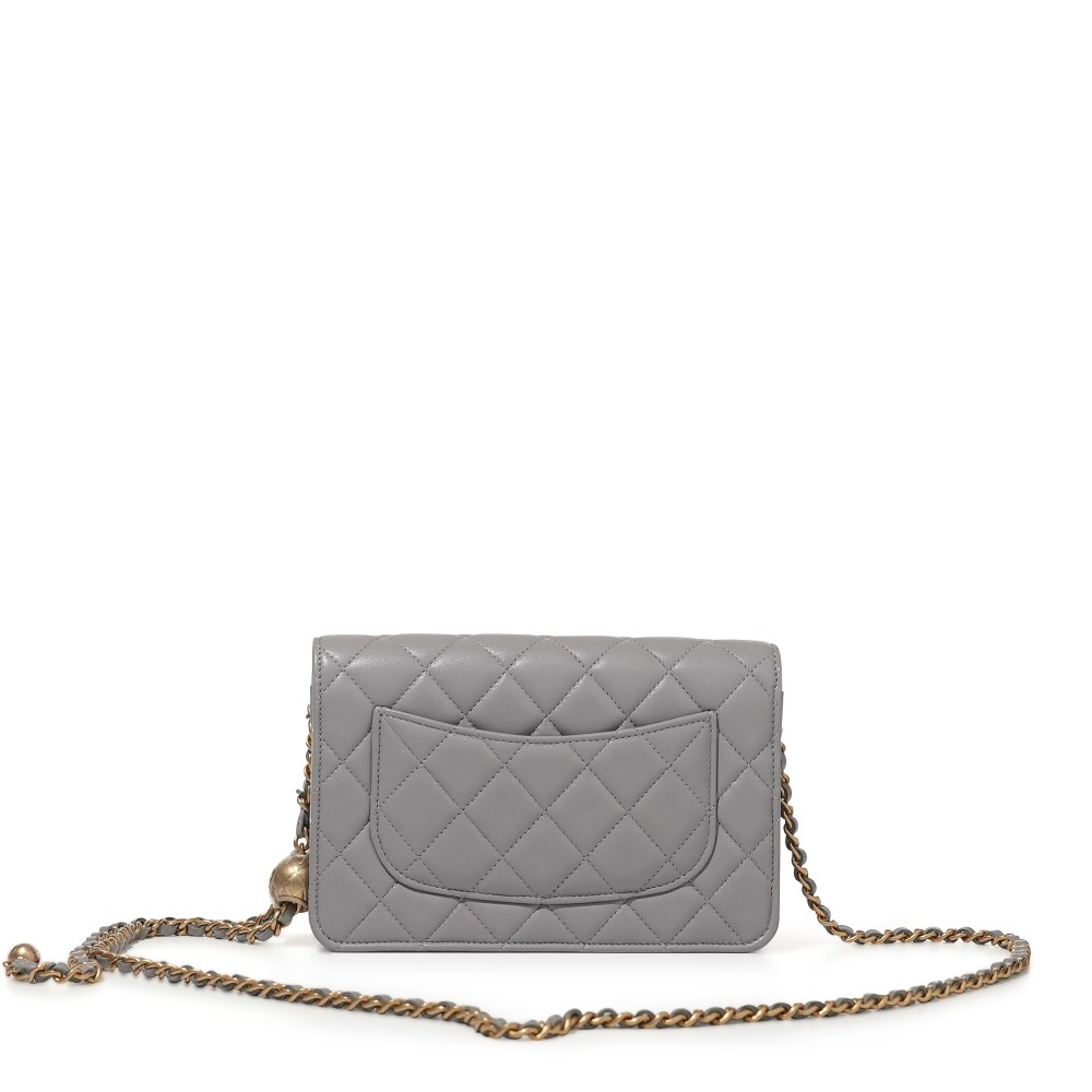 Chanel Grey Quilted Lambskin Pearl Crush Wallet on Chain Gold Hardware