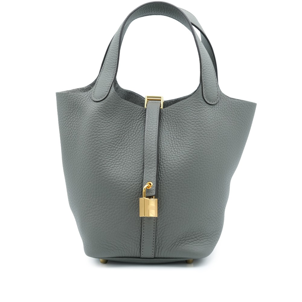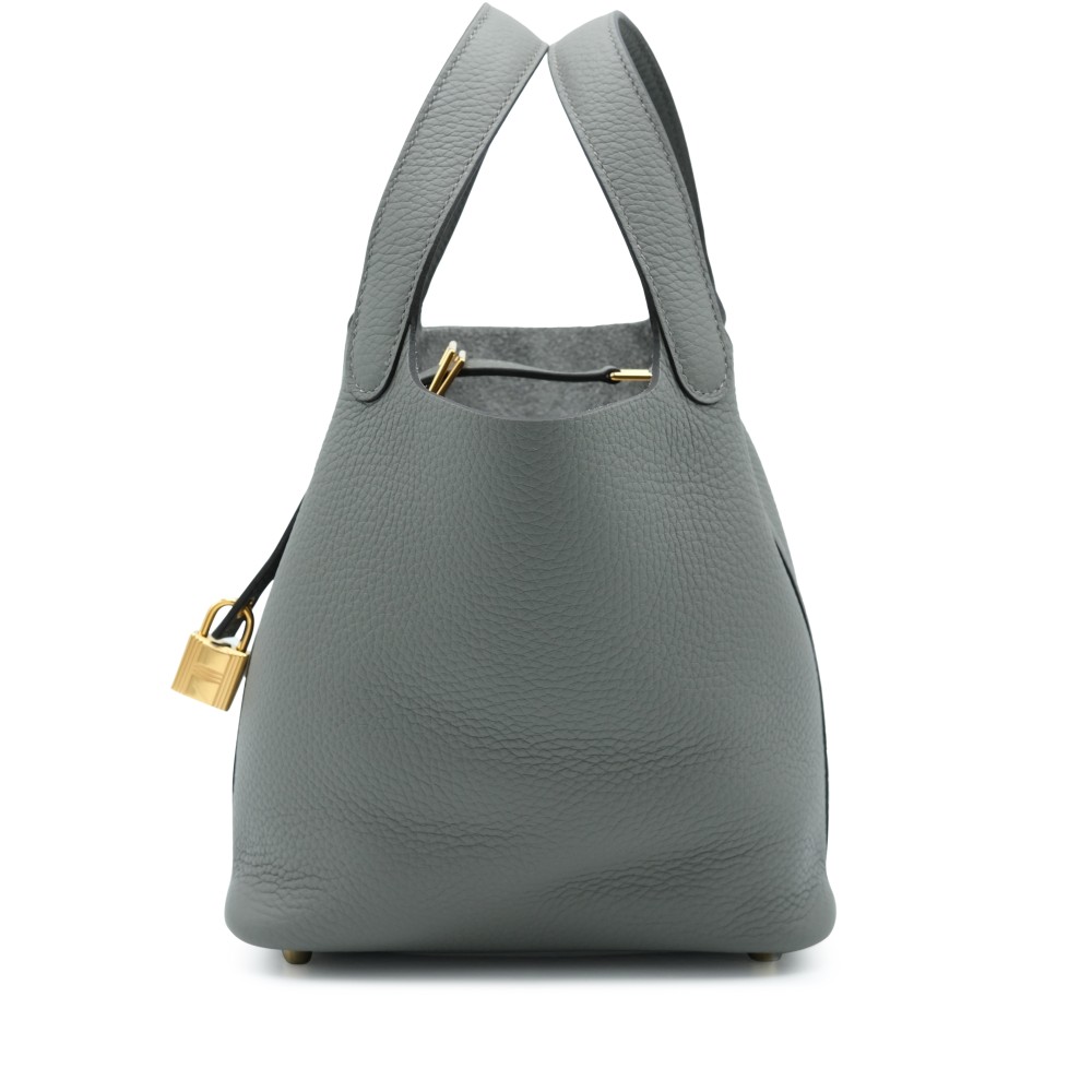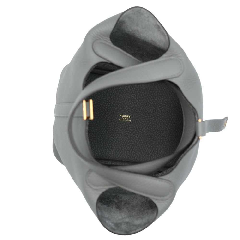 Herm?s Gris Meyer Clemence Picotin Lock 18 Gold Hardware, 2023